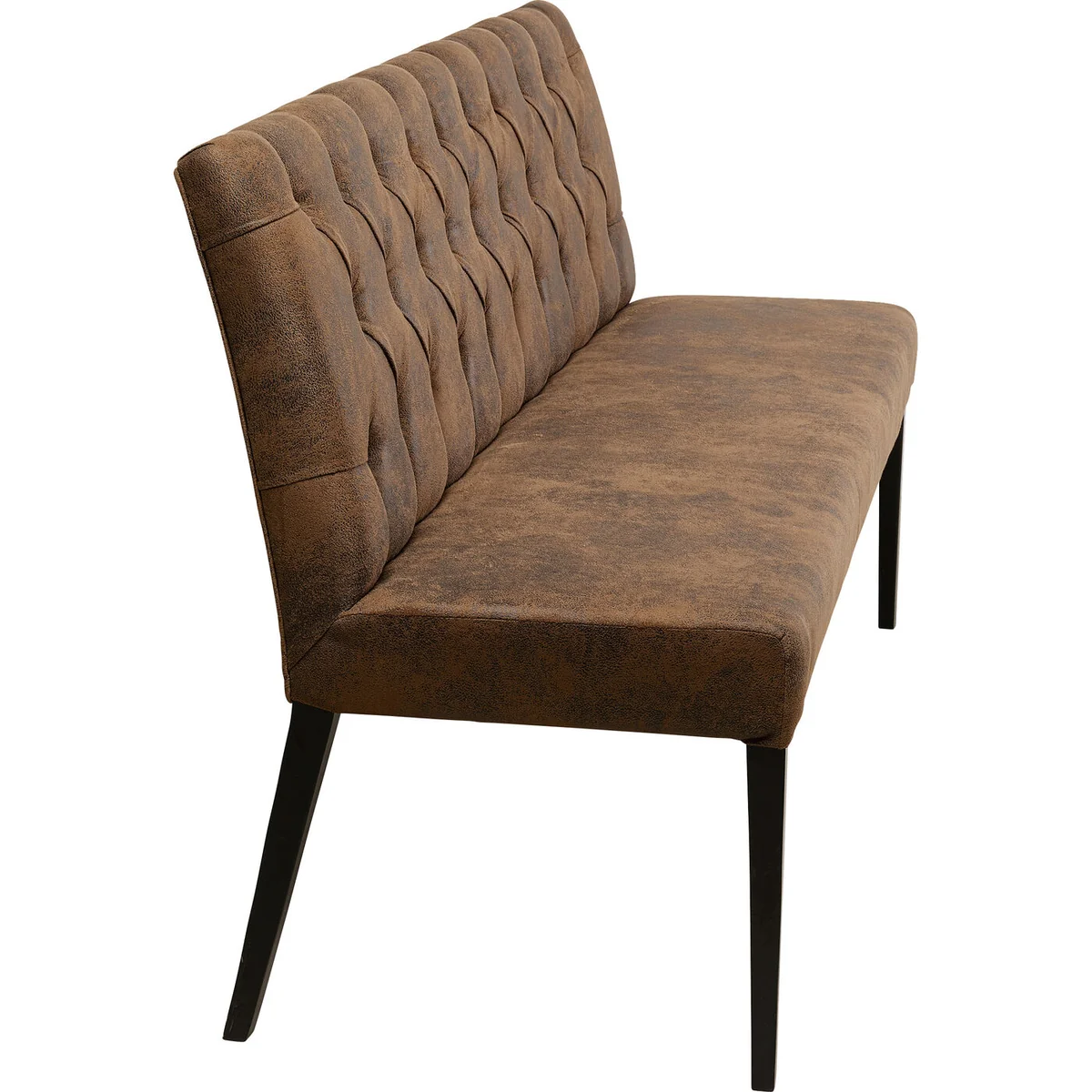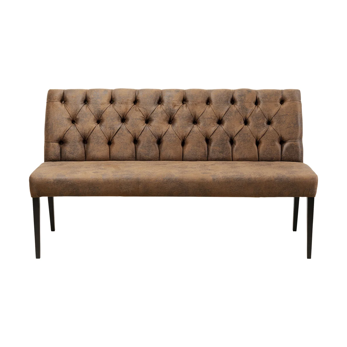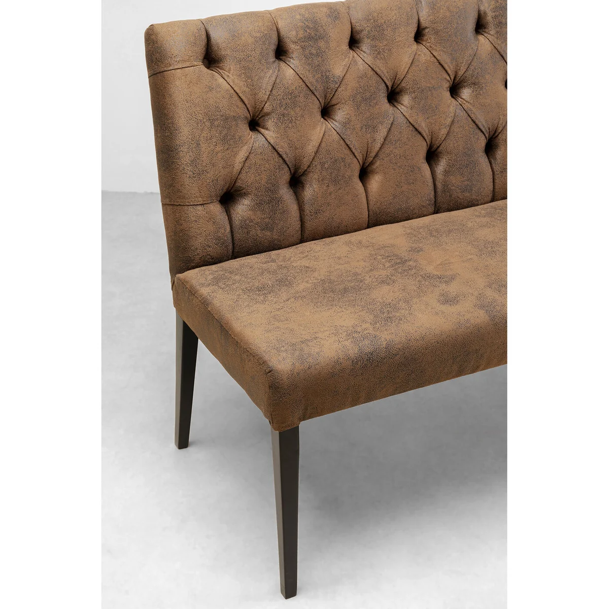 An elegant, vintage-look upholstered bench - This bench makes an impact with its leather-look cover and stylish Chesterfield upholstery on the backrest! The surface finish of the cover creates charming vintage flair. The bench stands on four slim legs of painted beechwood. In its warm shade of brown this bench not only catches the eye but is also extremely comfortable thanks to its robust upholstery! Perfect for taking a short or even slightly longer break.