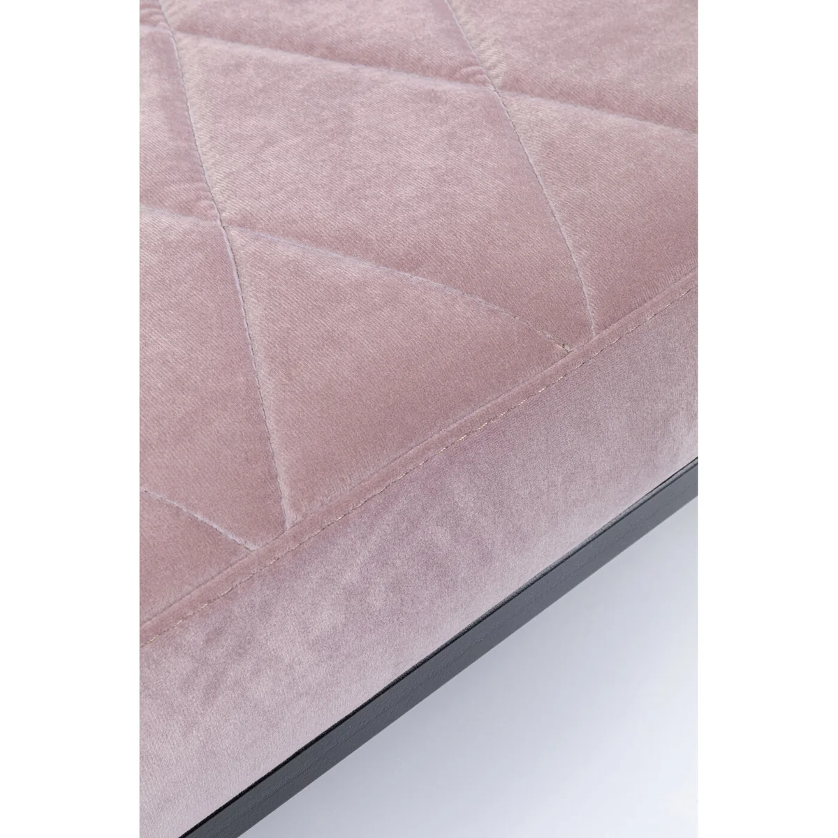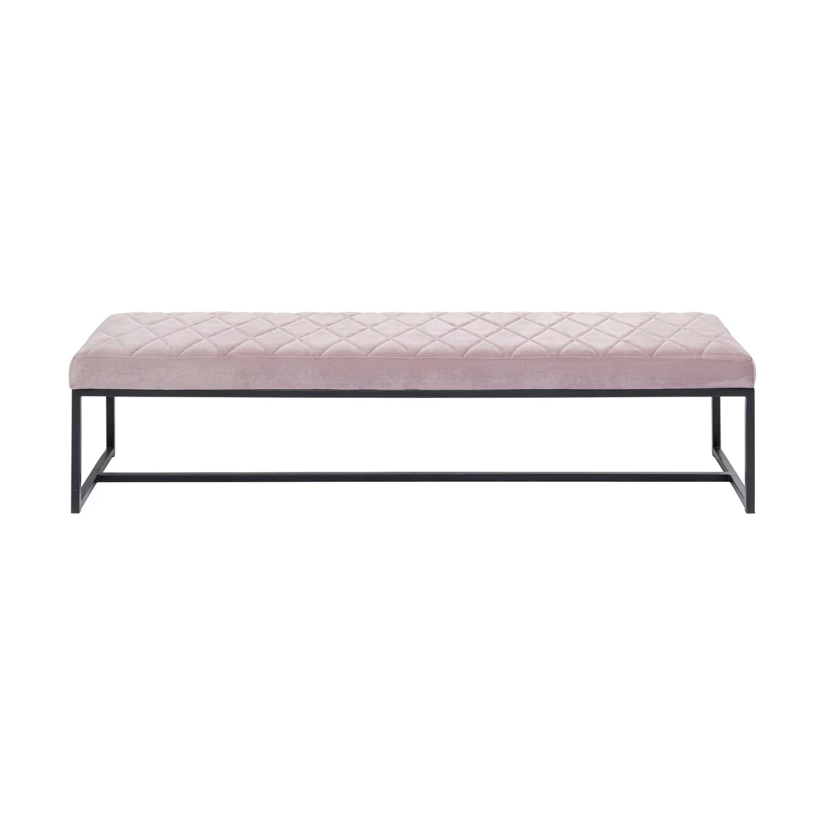 - A pink upholstered bench 150cm wide with a black metal frame - Provides that glamour and luxury feeling: a quilted and upholstered seat in a velvet look, seat height 40cm - A bench for the hallway and cloakroom, or next to the bed like in a hotel - A favourite place and really decorative in front of a window for chilling out with a good book - Fabrics in a velvet look shimmer differently depending on how the light falls