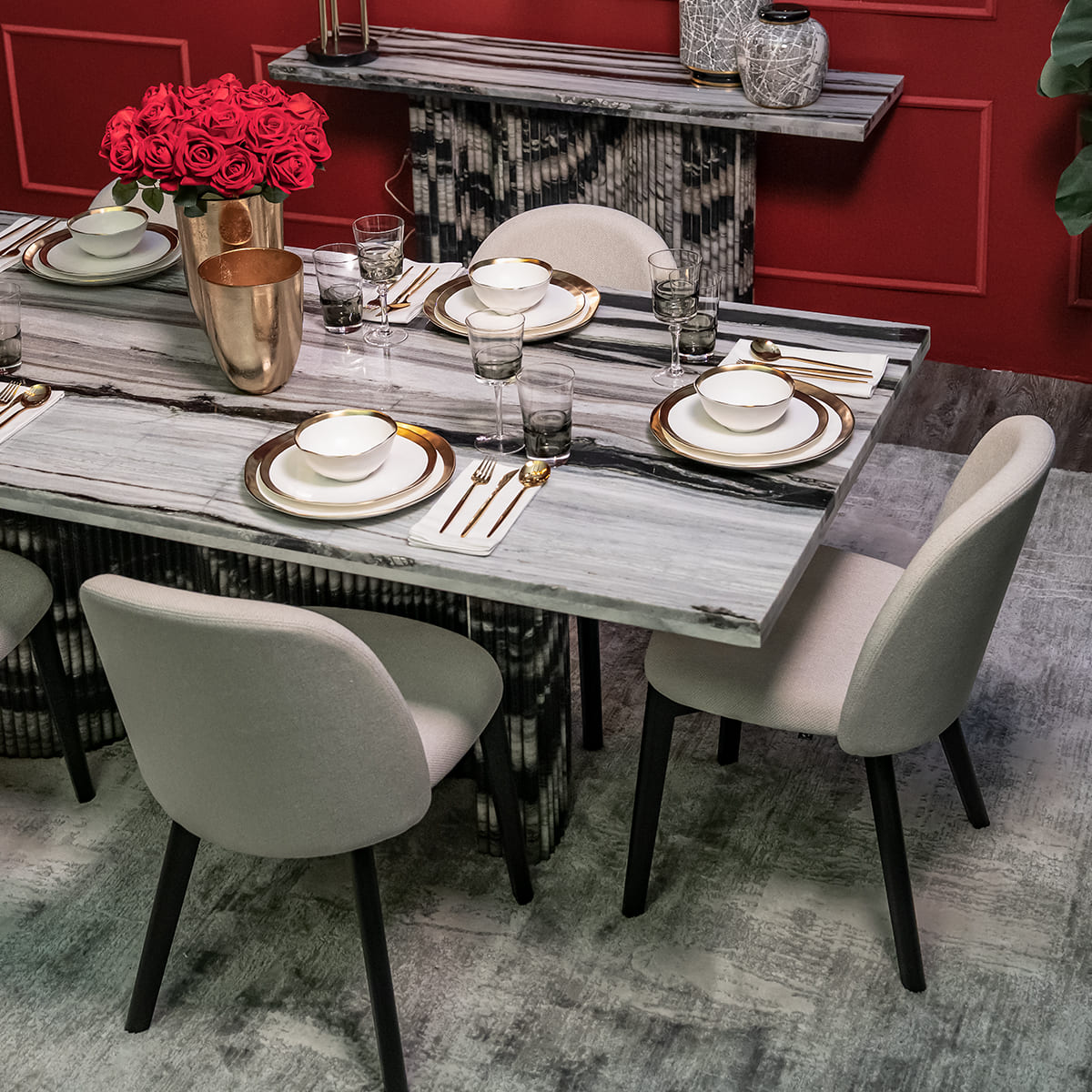 Berlin Marble Dining Table in Panda Marble makes a striking statement in any dining area. The unique pattern and balanced design create an elegant setting that invites connection and conversation.