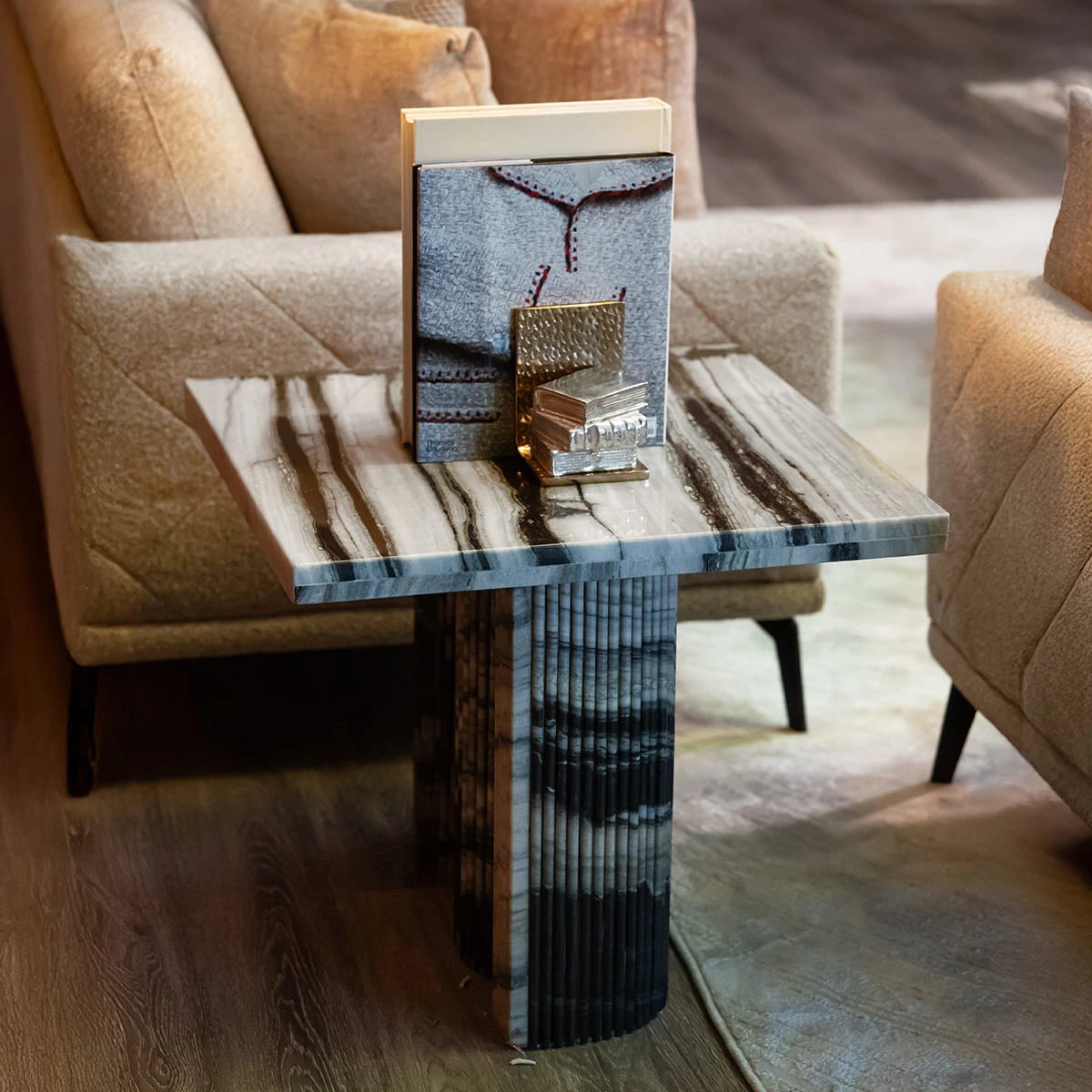 Berlin Side Table in Panda Marble offers compact beauty with a luxurious feel. Ideal for bedrooms or living areas, it provides a graceful accent that blends effortlessly with a range of interior styles.