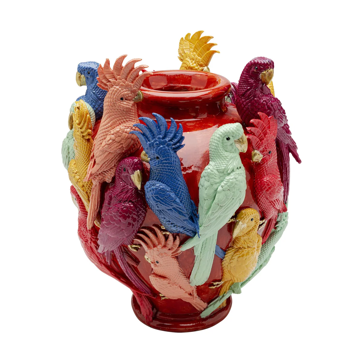 Exotic charm meets artistic extravagance – this colourful vase transforms any interior into a tropical oasis of well-being. With dazzling bird appliqués in a 3D look and bright colours, it becomes a decorative statement that radiates pure joie de vivre. The glossy finish emphasises the extraordinary look and gives it a particularly high-quality appearance. Whether as a solo artist on the sideboard or as a stage for colourful flowers, this decorative highlight brings movement and imagination to modern living concepts. The vase looks particularly harmonious in combination with natural materials, golden accents or other artistic individual pieces. A feast for the eyes and the ambience.