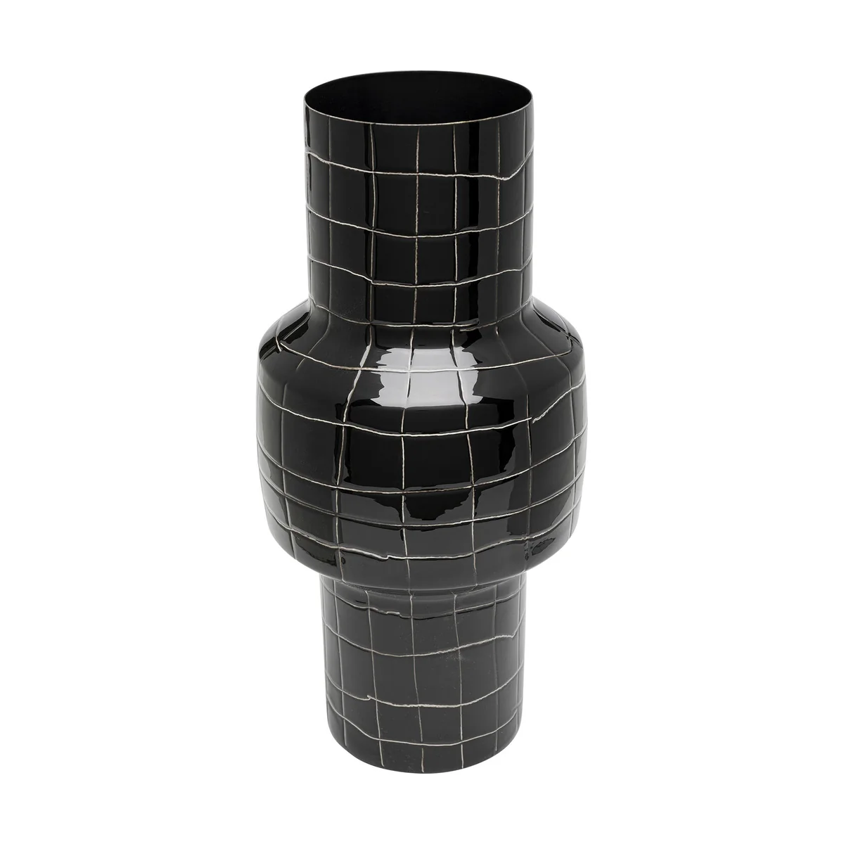 Add an artistic touch to your modern interiors with this Black and White Mesh Vase in enameled steel. Its stunning grid design and glossy finish embody urban purism with a twist.