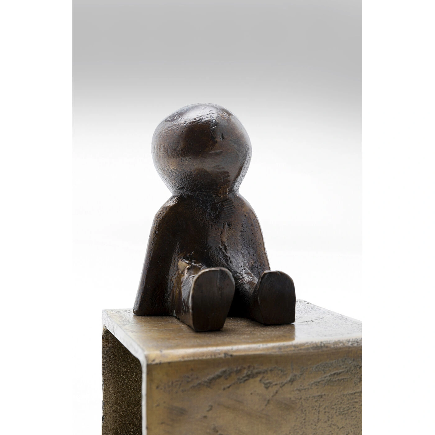 • Two stylized figures on a cube stylishly keep the bookshelf tidy