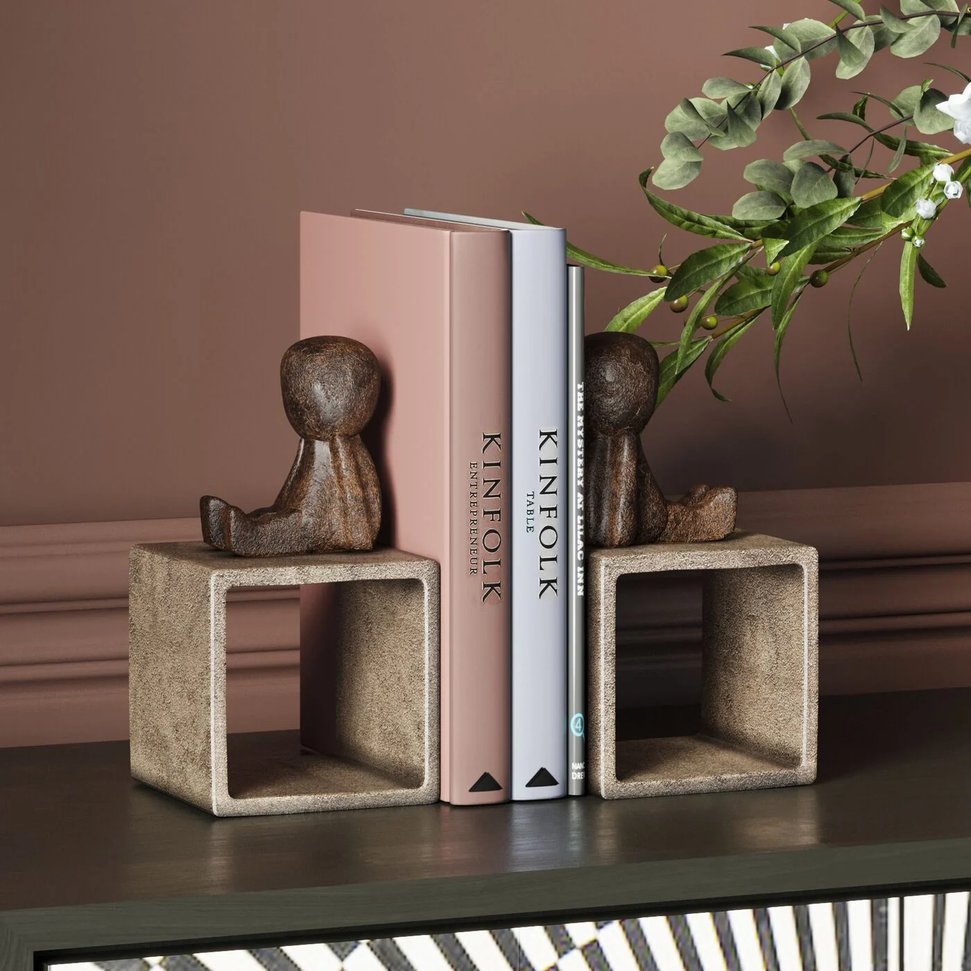 A charming duo that brings order with character into the home: this bookend set transforms any bookcase into a stylish eye-catcher. In addition to the practical function of keeping valuable treasures safe, the playful figures create lively accents on the shelf or sideboard. Whether as a highlight in an urban loft or as a lively counterpoint in a classic interior - the little companions fit effortlessly into a variety of furnishing concepts. They are particularly effective in combination with warm wood and metal elements, which emphasize the whimsical charm and at the same time ensure a harmonious overall look.