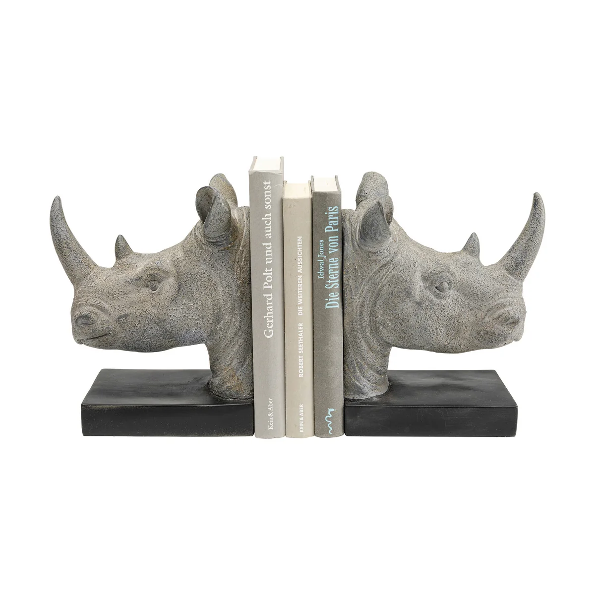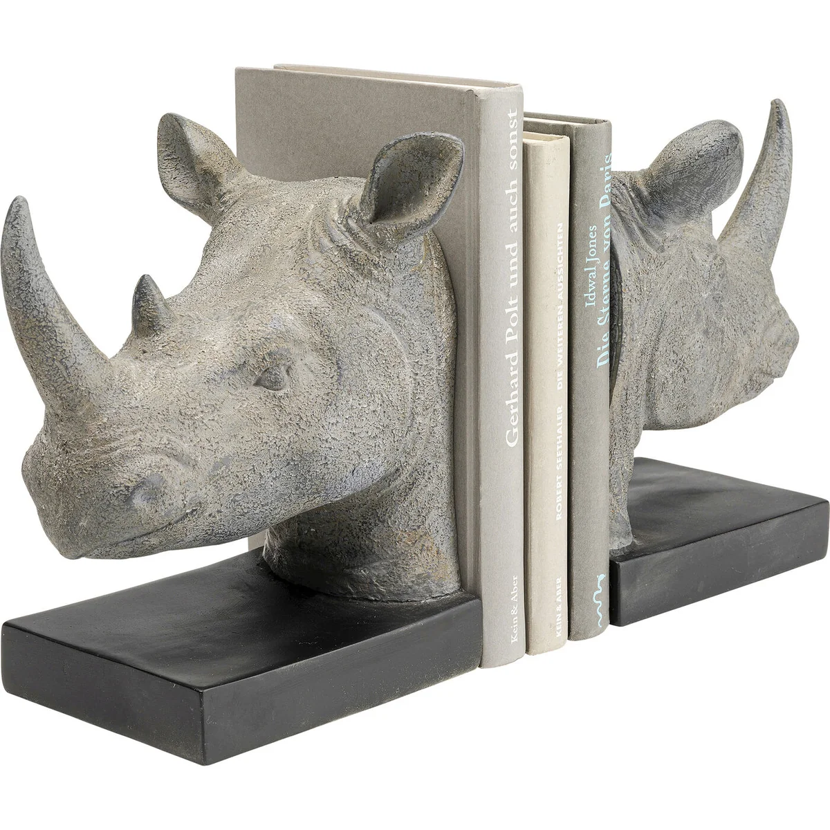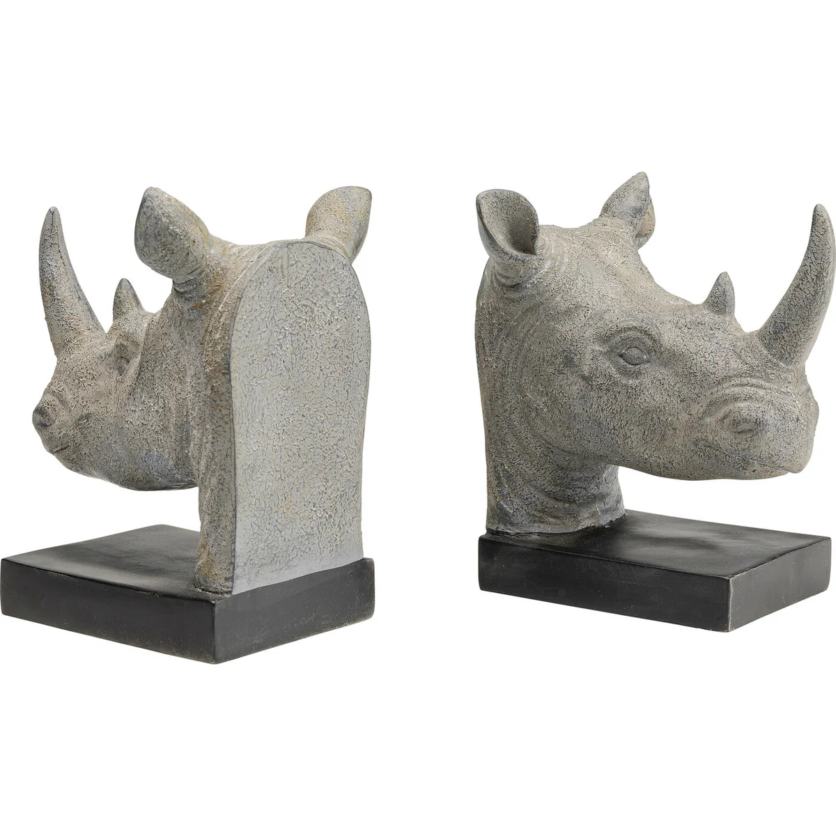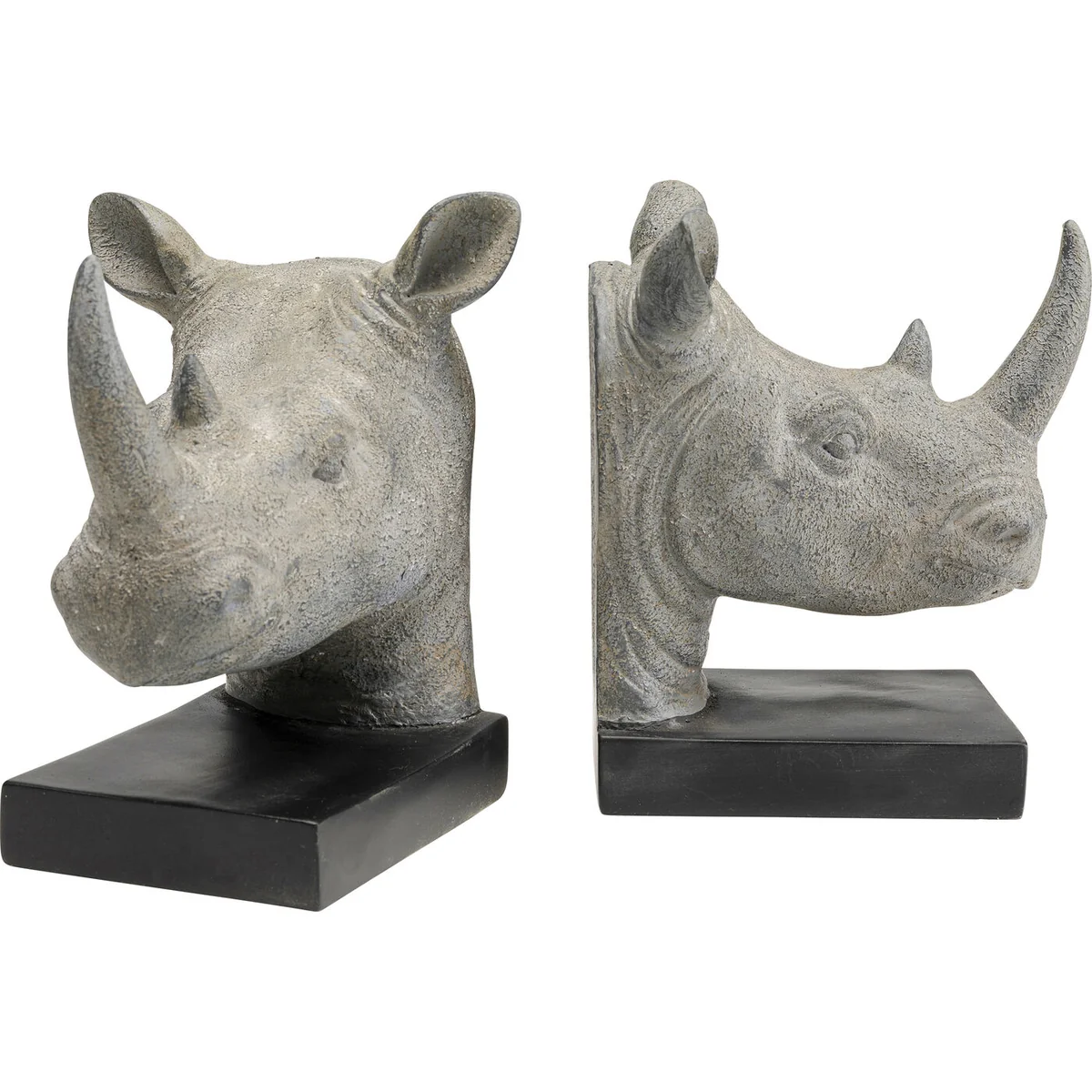 Add style and organization to your bookshelf with this Set of Two Grey Rhino Bookends. Crafted from durable polyresin and featuring a unique rhino design, these bookends not only keep your books in place but also add a touch of creativity to your decor. Organize your bookshelf with these unique and durable Grey Rhino Bookends. Order now to bring style and functionality to your home.