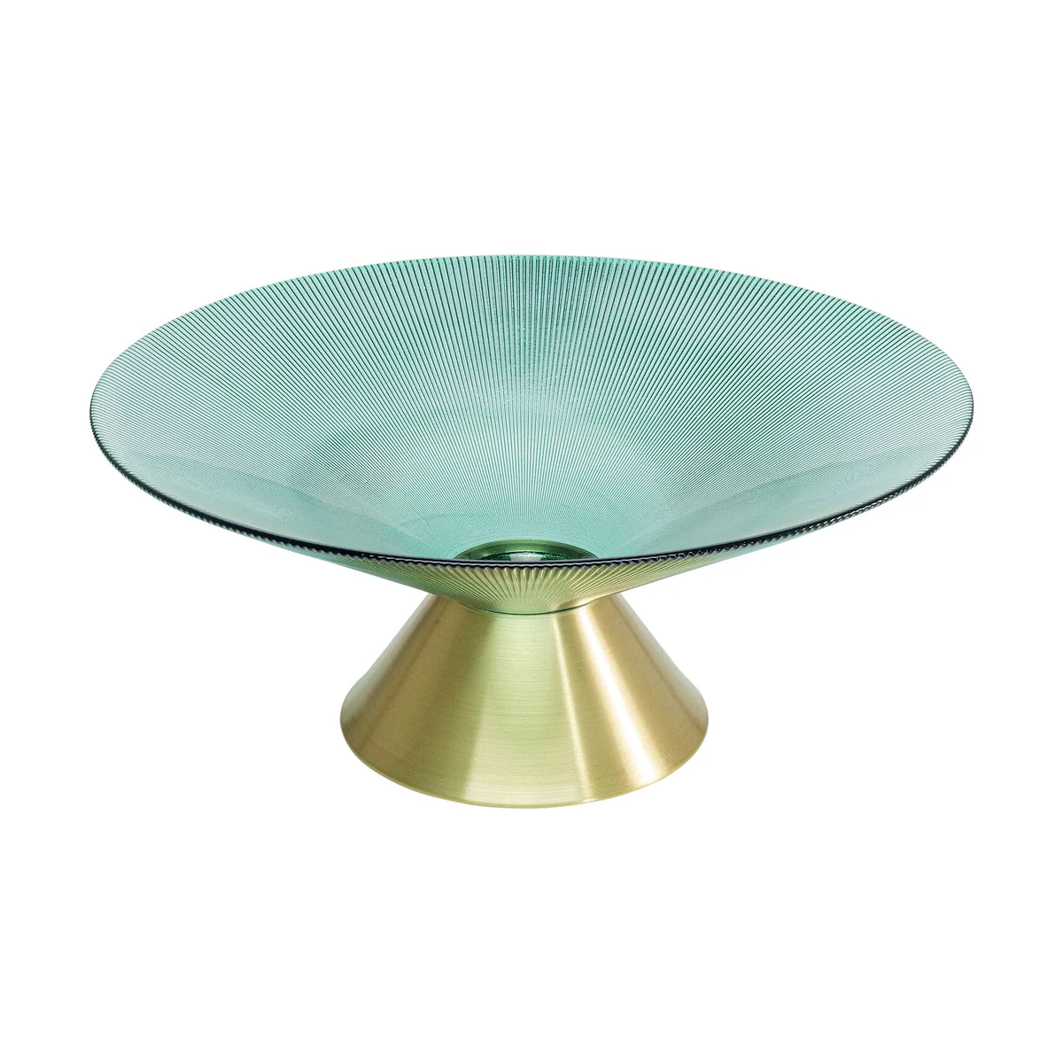 This bowl is a gem that has a fascinating aura even without decoration. The combination of blue glass and gold evokes memories of the sea. Its linear structure gives the shapely glass bowl that certain something.