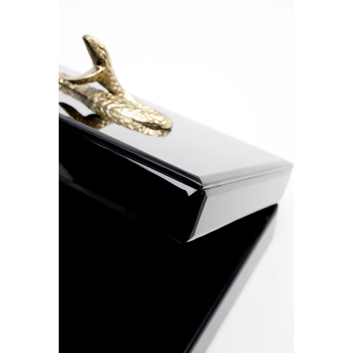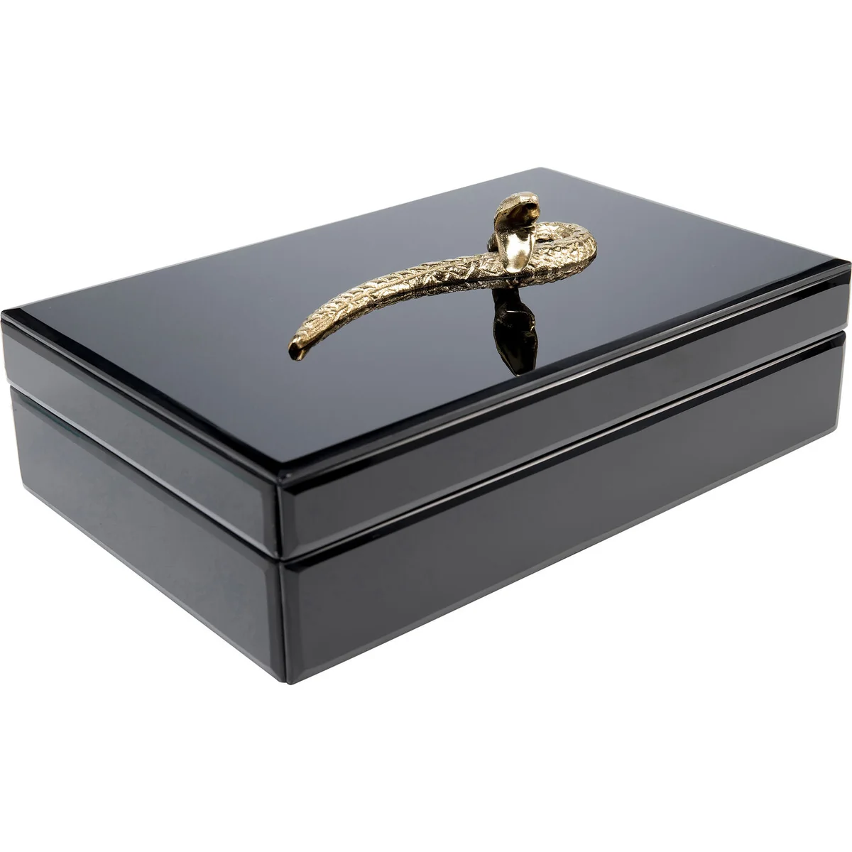 Introducing the Snake Bite Black Box 28X7Cm – a sophisticated and contemporary addition to elevate your home decor. This exquisite piece is meticulously crafted with a glass foiled-lacquered cover that exudes elegance and style.