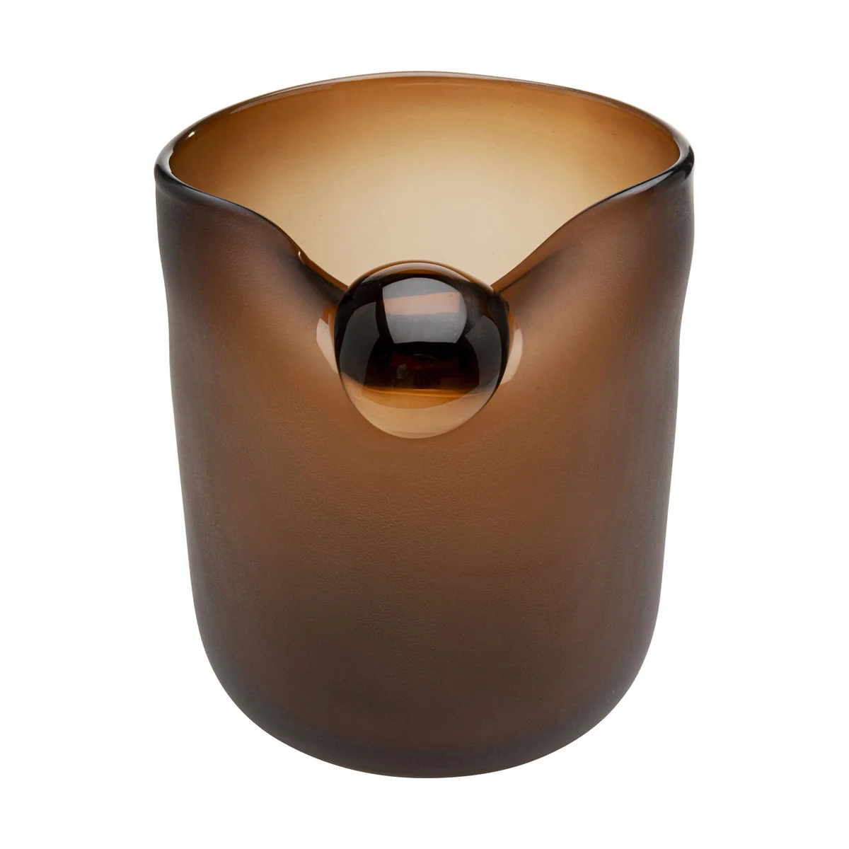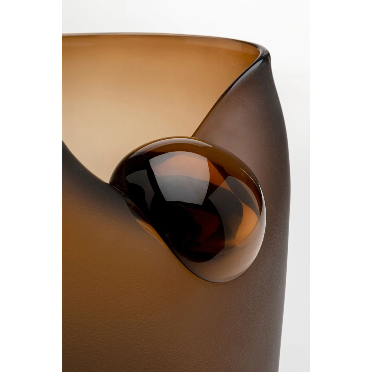 Key features of this exceptional vase include its captivating silhouette and striking matt brown finish. Measuring 21 x 17 x 17 centimetres, it's made from coloured glass, allowing it to catch light in unique ways. The organically shaped details make this vase a true standout, whether it's serving as a standalone piece on a sideboard or paired with other decor items on a shelf.