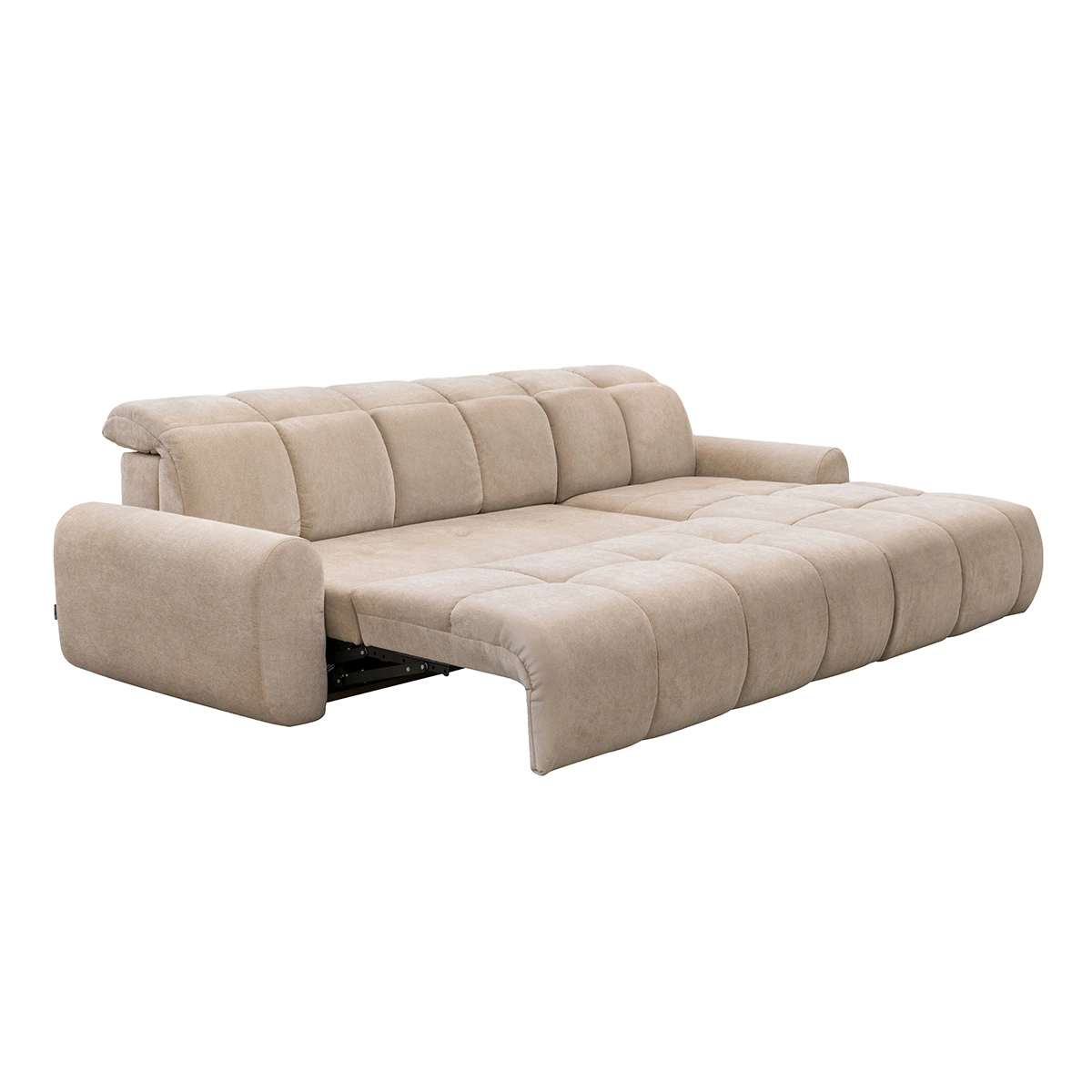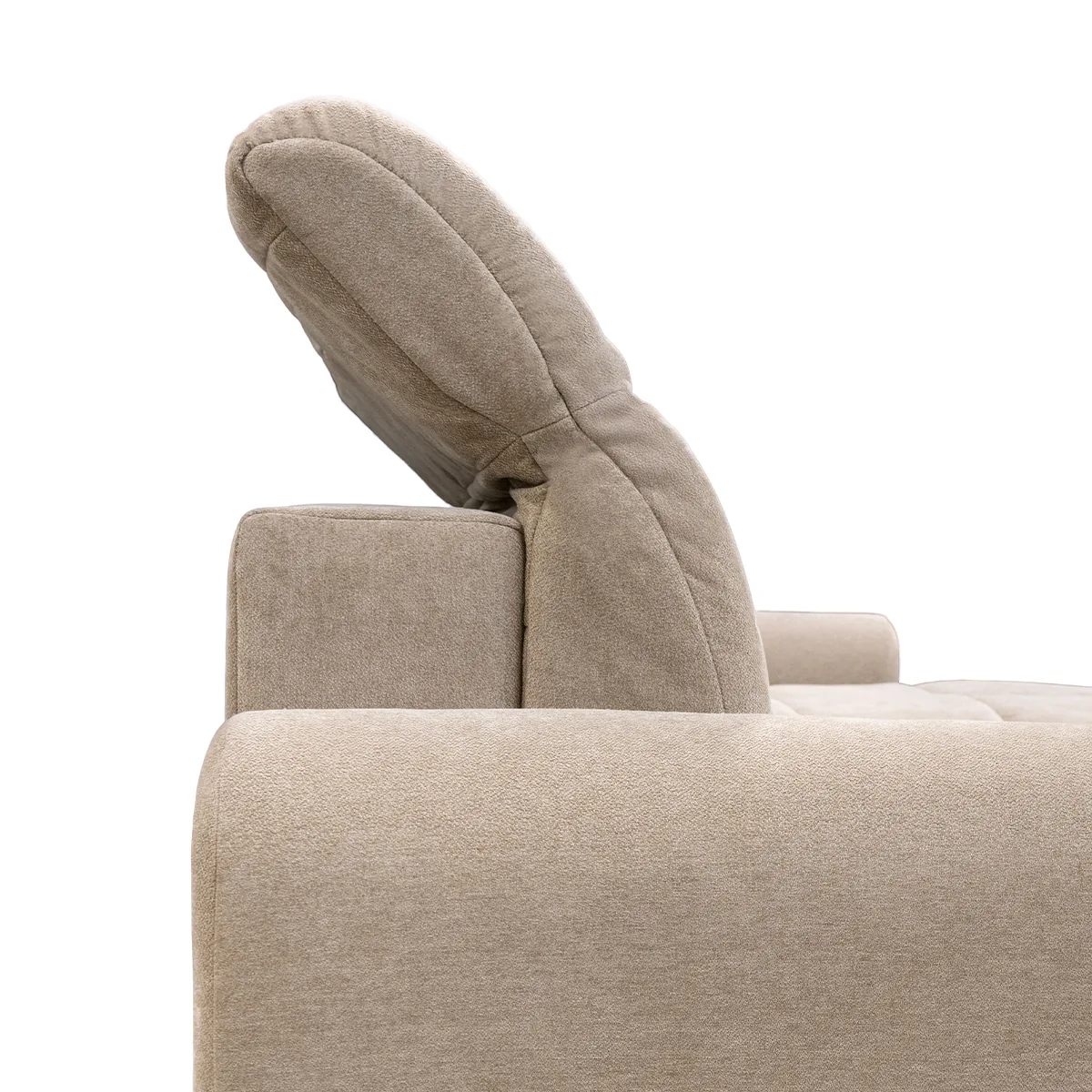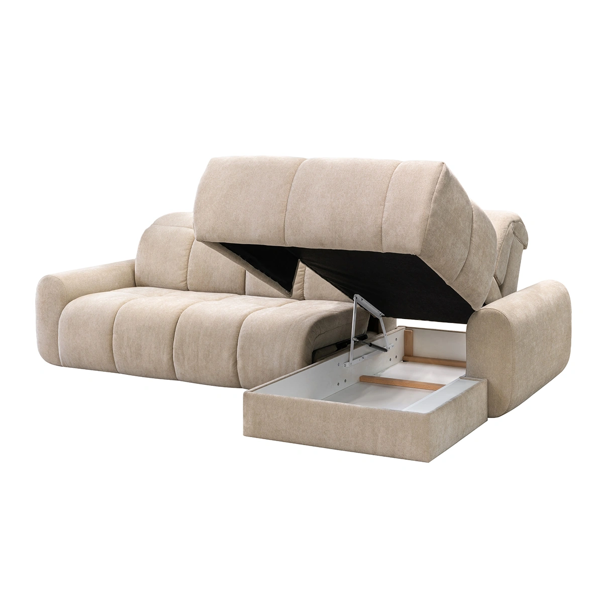 Upholstered in 100% polyester fabric, the sofa includes high-resilience HR37 foam seating and an ergonomic backrest with VP25 foam for balanced support. A durable internal frame made from spruce and beech wood, MDF, plywood, and HDF ensures long-term reliability, while the layout supports easy conversion for sleeping use.
