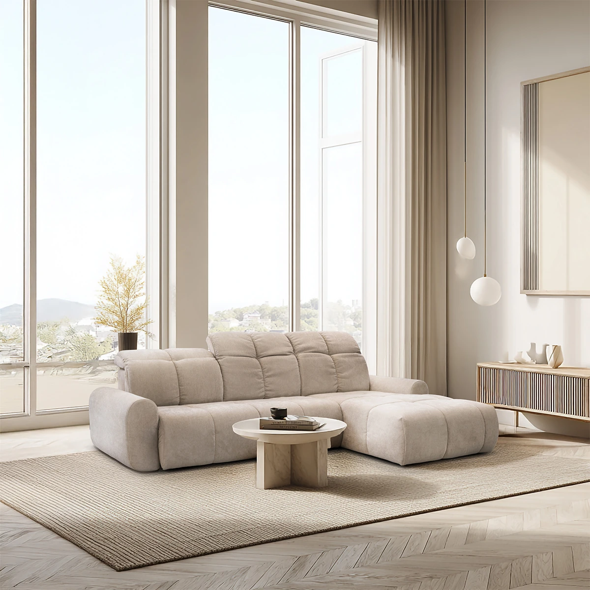 The Bullet Corner Sofa with Sleeping Right in brown brings adaptable comfort to contemporary interiors. Featuring a right-facing corner layout and integrated sleeping function, this fabric sofa is designed for homes that need both stylish seating and practical overnight accommodation in one cohesive piece.