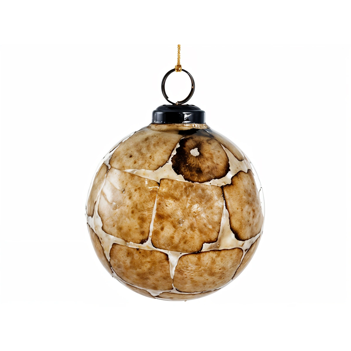 Burned Paper Mosaic Glass Ball Ornament in Brown, Medium Size