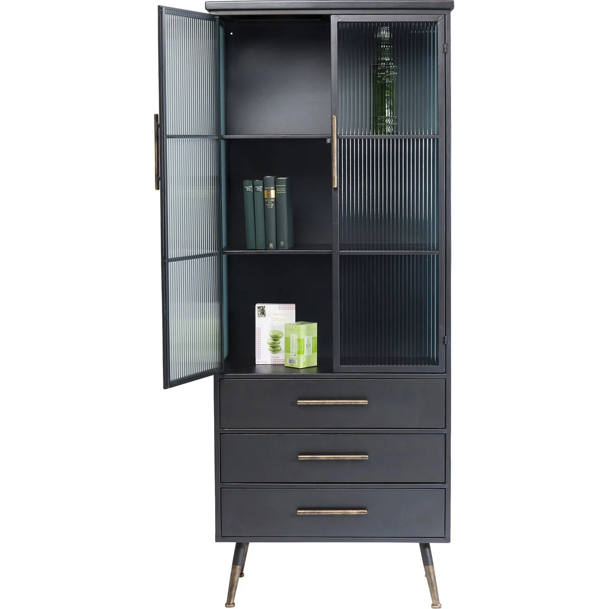The La Gomera Cabinet stands at a comfortable height of 180 cm, with a length of 72 cm and depth of 38 cm. Crafted from high-quality Medium Density Fibreboard (MDF), it's lacquered to perfection for a glossy, sophisticated finish. The cabinet features a spacious interior, offering ample storage space with 2 doors and 3 drawers.