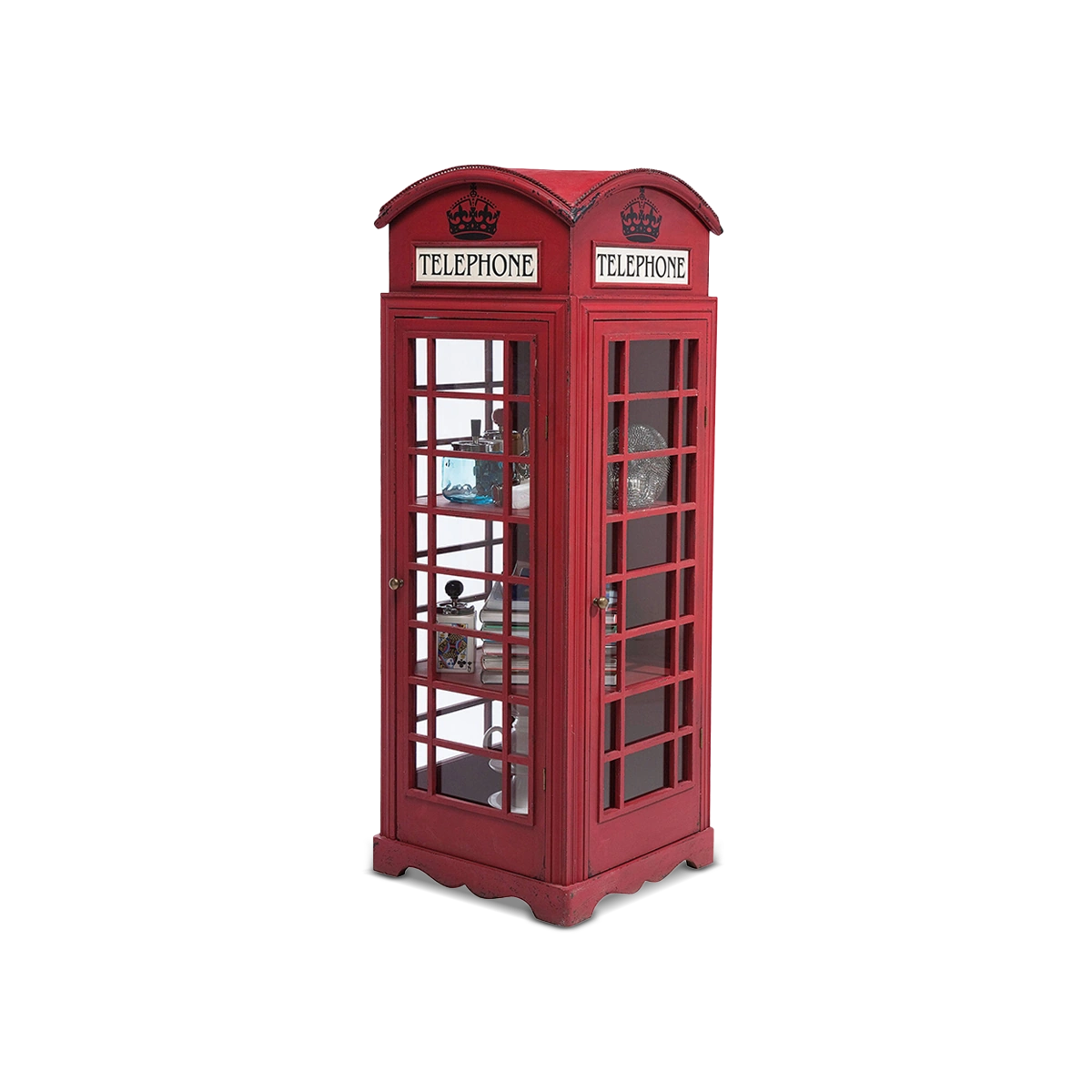 A striking glass cabinet in an impressive design – this out-of-the-ordinary cabinet is a highlight of British interior design! This original cabinet makes an impression which is anything but dusty. On three levels the much-loved telephone box provides lots of room. It refreshes everyday life in a typical British way and matches a range of furnishing styles. In a bright red, high-quality finish. A charming eyecatcher with antique flair. Further articles available in this original style.