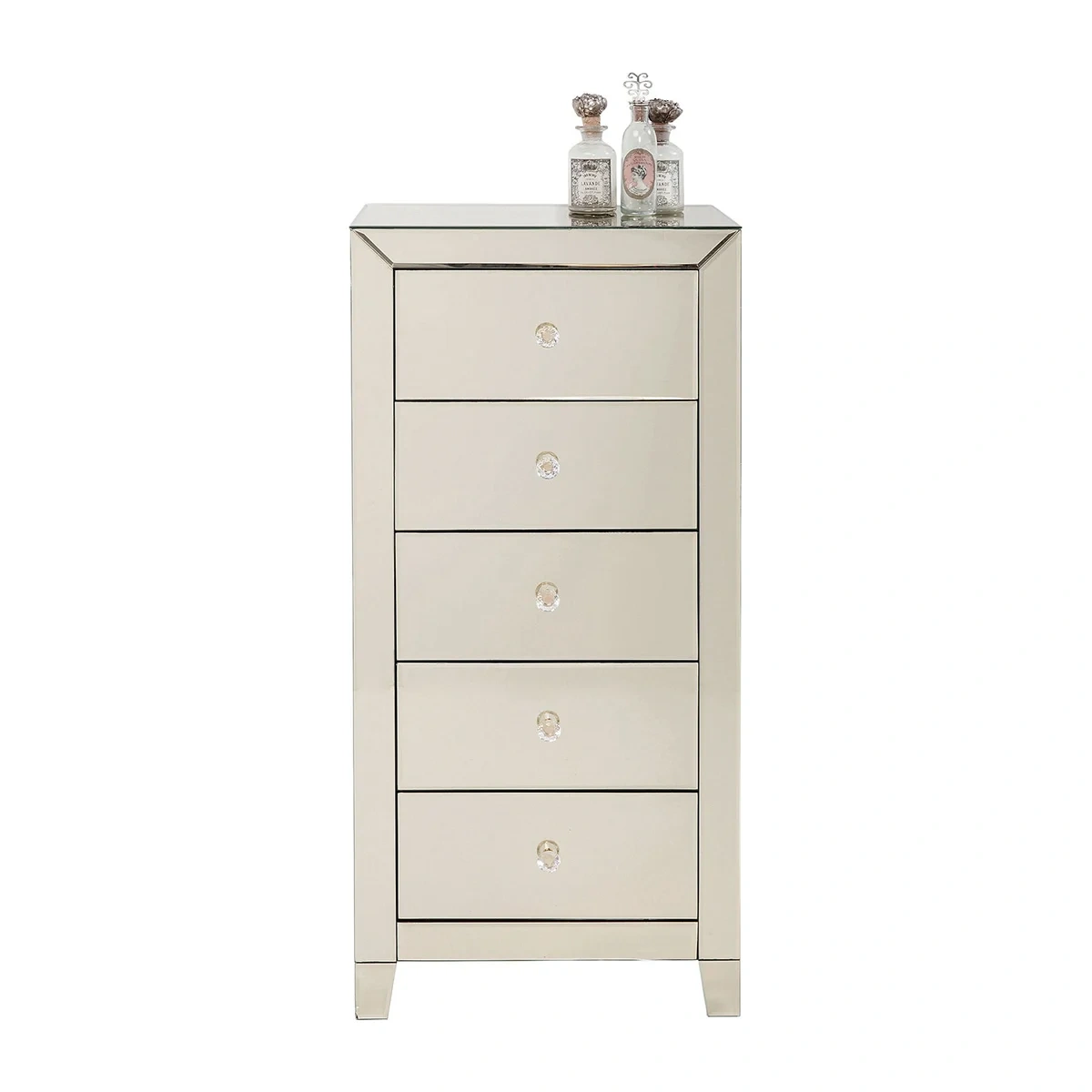 • Mirrored high chest of drawers that impresses with its practical dimensions and glamour