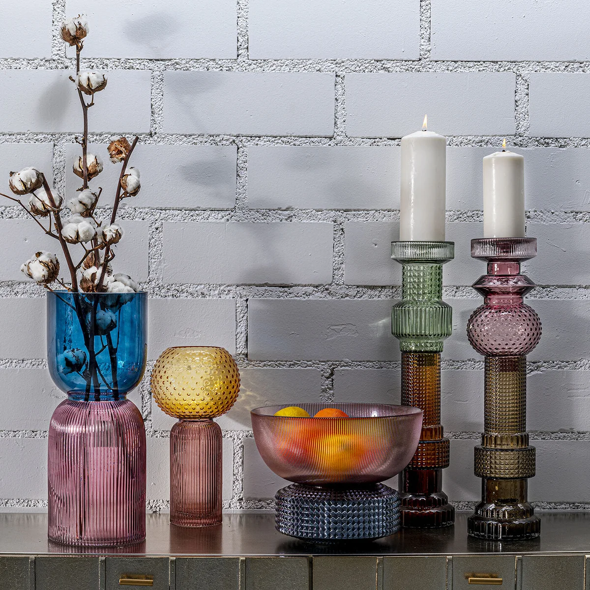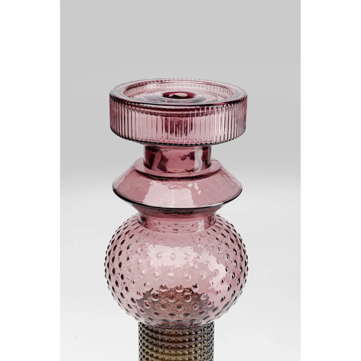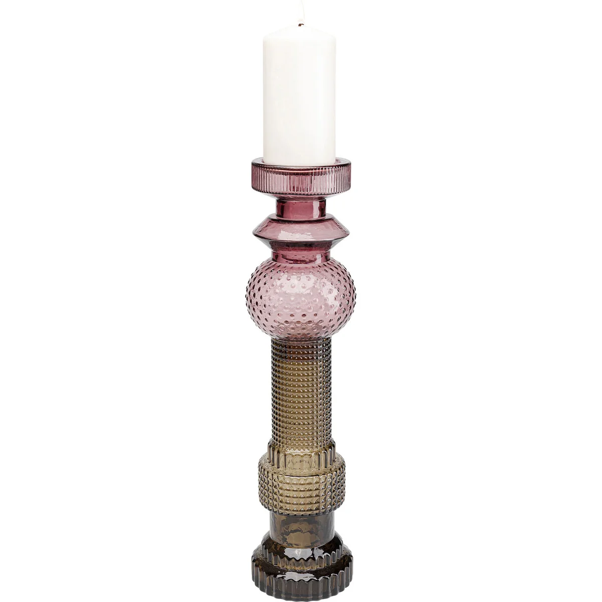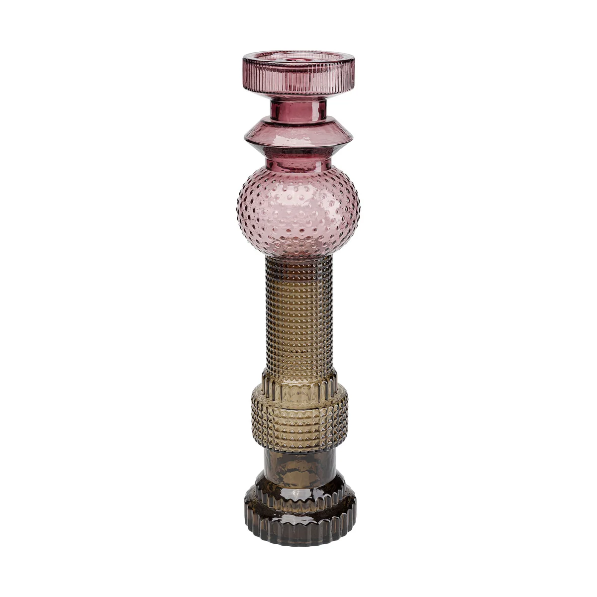 • A tall candlestick made of differently coloured and embossed glass in green-grey and lilac-pink for pillar candles • A glass object as if from the workshop of an artist, which plays with geometric shapes and structures • Objects made of coloured glass represent the new lightness in decorating • Every Marvelous candlestick is handmade and therefore unique - it may therefore show slight variations from the illustration • Available in other colours and as vases - especially attractive when arranged in a group