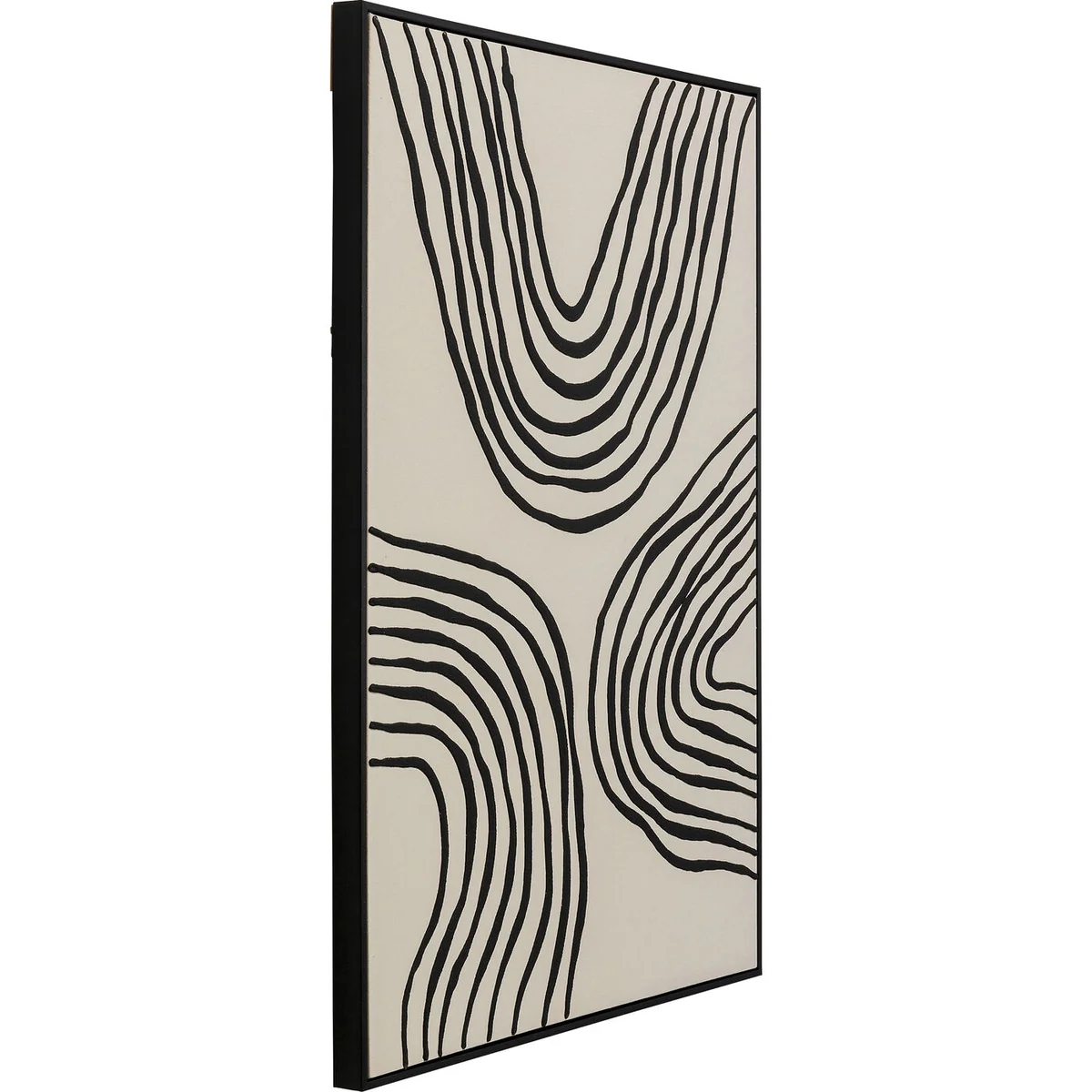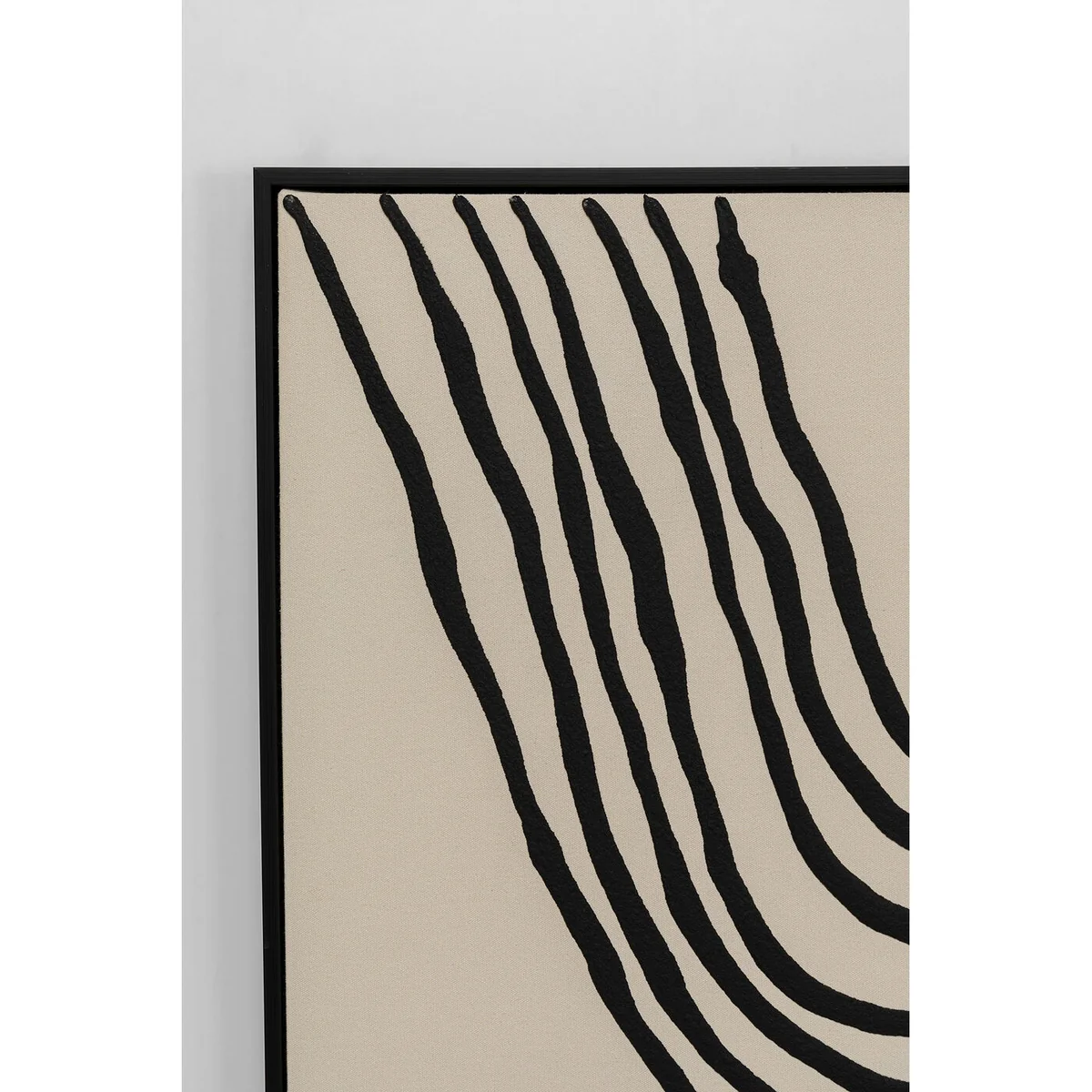 Key features of this canvas picture include its impressive size, abstract motif, and handcrafted details. The artwork is framed in polyresin and medium density fibreboard (MDF), ensuring durability and style. The expressive colors and shapes in cream-white and black create an inspiring environment for your home.