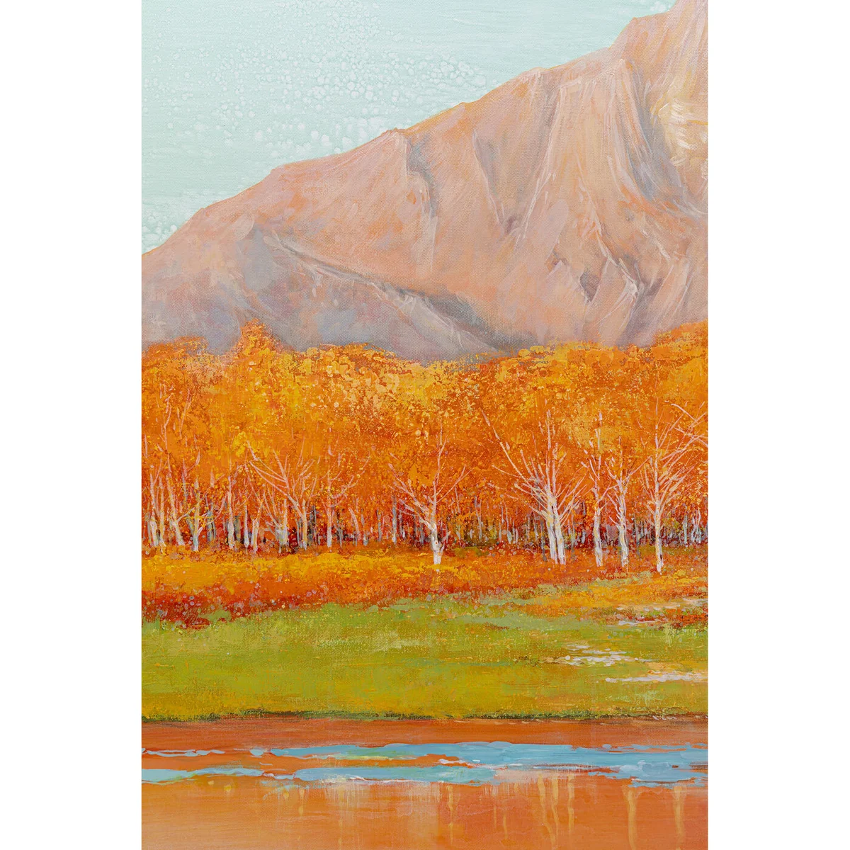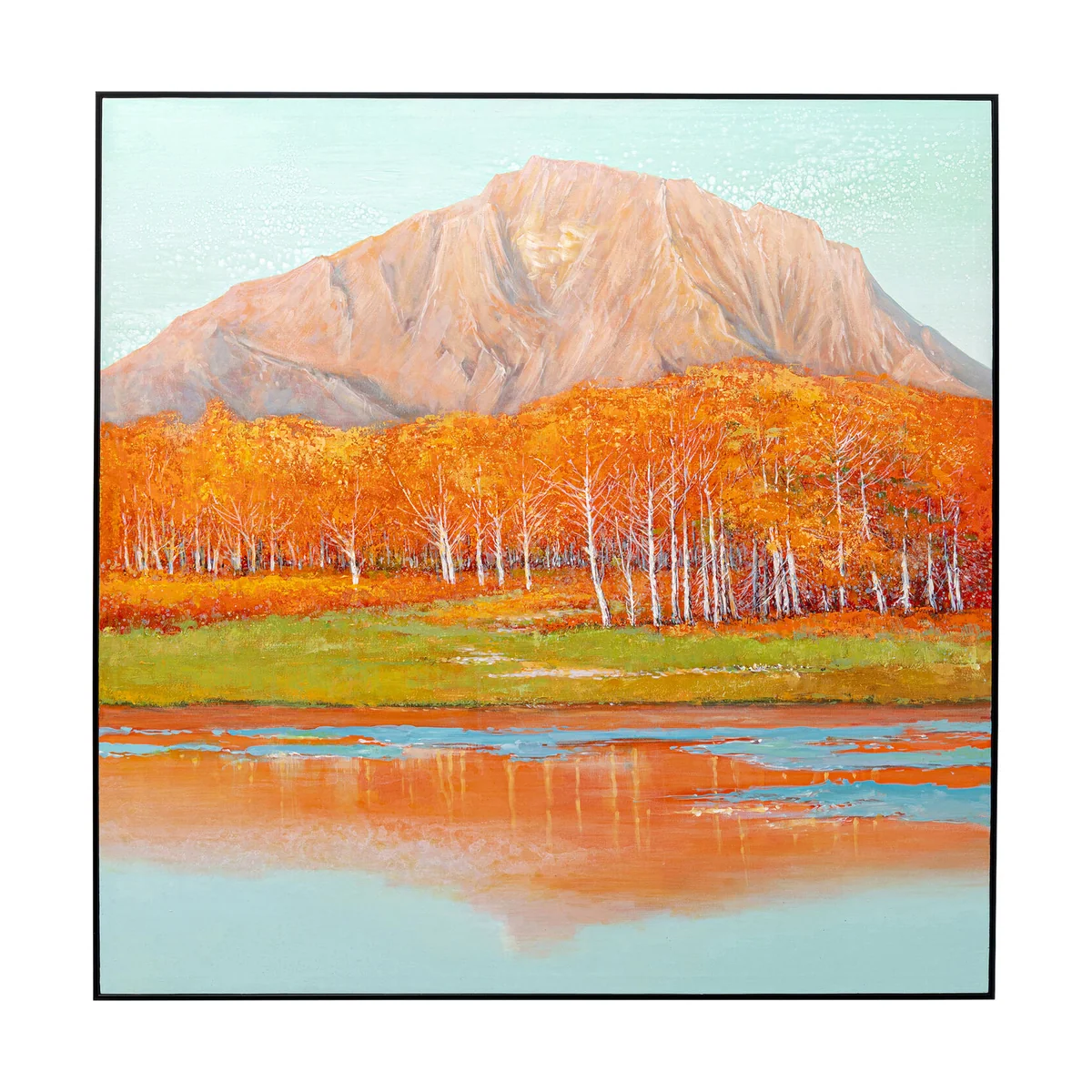 - Colourful picture print on canvas (cotton) - Canvas stretched on solid wood frame - Narrow and deep gallery frame in black with reinforced corners - Large, square format measuring 120x120 centimetres - Makes a great centrepiece on the wall in the living or dining room
