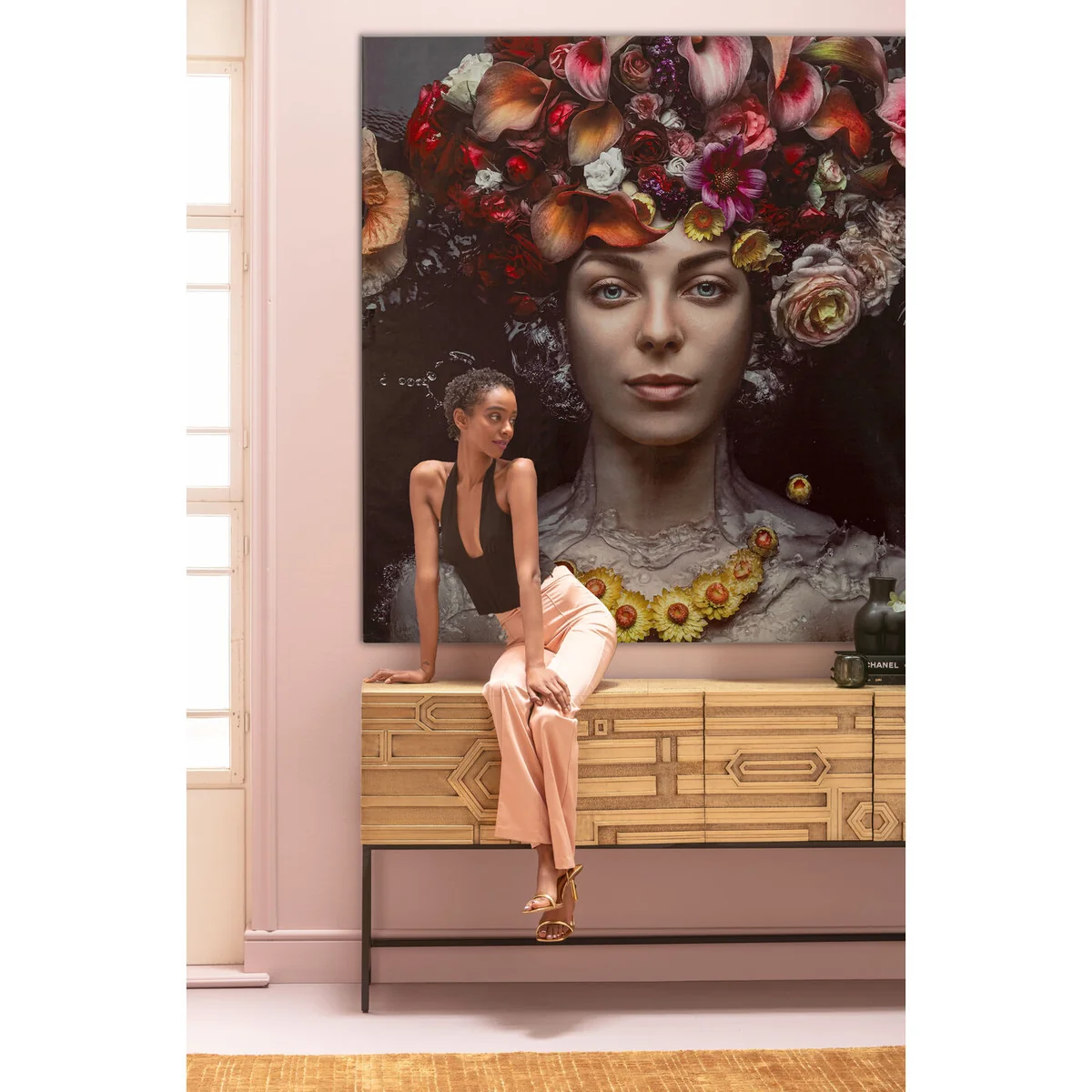 Flower Art Lady Canvas Picture, 200X200 CM