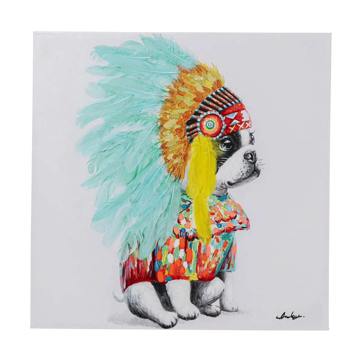 Make a bold statement with this Multicolor Headdress Dog Canvas Picture in polyester fabric. This art piece is designed to impress with its unique blend of creativity and color.