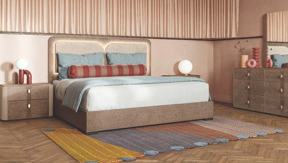Explore upholstered beds, solid wood frames, and high-gloss finishes, complemented by mirrored dressers and bedside tables. Add luxury and comfort with organic bamboo bedding, duvets, and pillowcases, crafted for softness, breathability, and a premium sleeping experience.