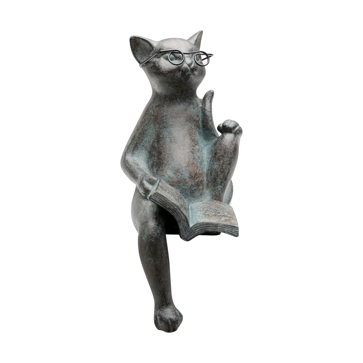 Introducing the Cats Life Large Deco Figurine in black polyresin, a playful addition to any home decor. This charming figurine, shaped like a gray kitten wearing glasses and holding a book, exudes a unique vintage vibe.