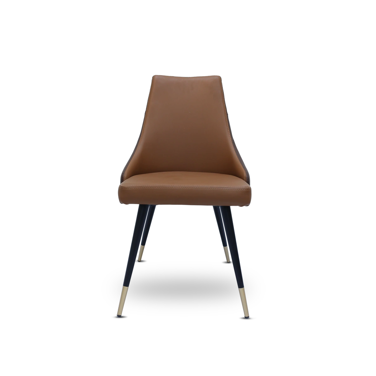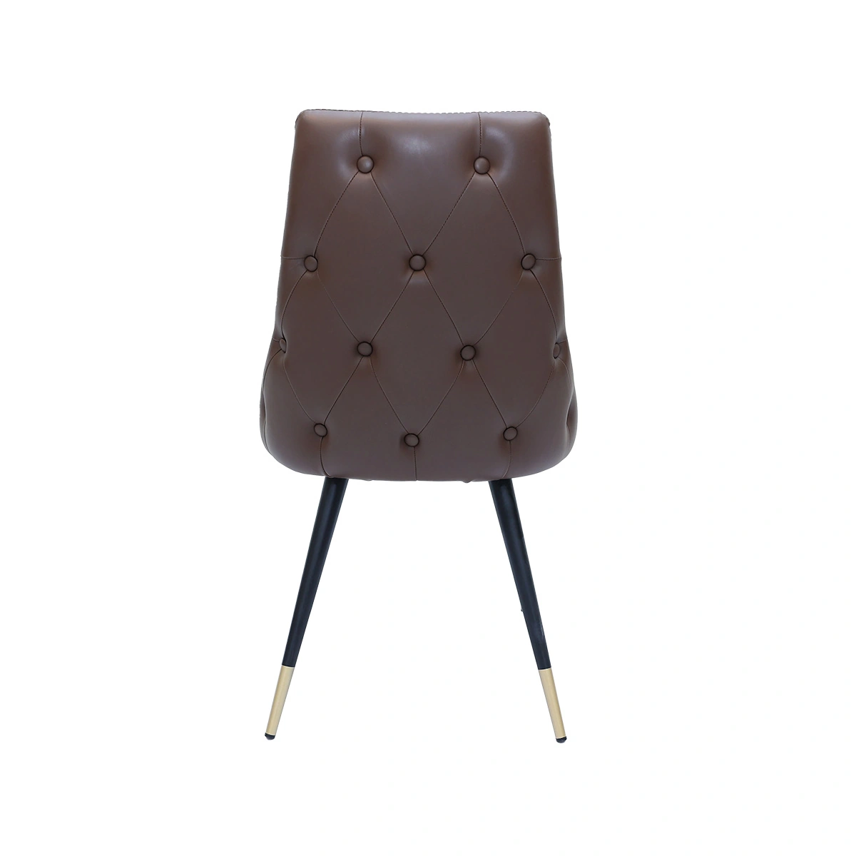 Comfortable? Yes! Elegant? Yes again! A softly upholstered dining chair in the style of the Fifties. A softly upholstered dining chair in the Fifties style, on slender legs with many chic details, such as gold feet and Chesterfield buttons on the back. It looks as decorative as a cocktail chair and will certainly be a cosy seat for your favourite people at many dinner parties.
