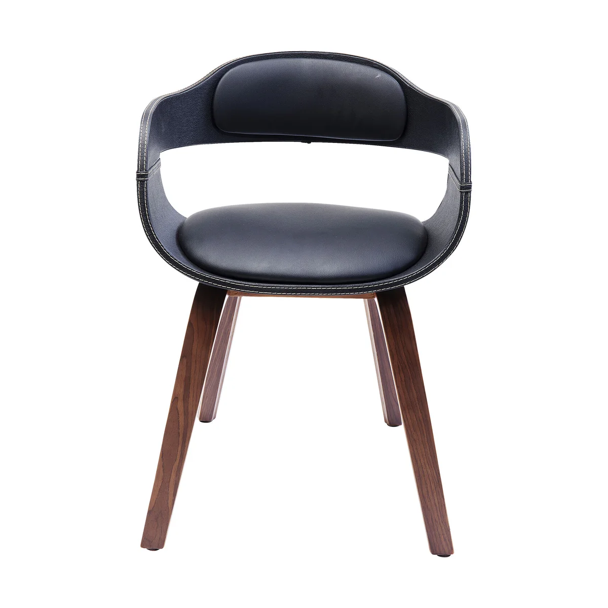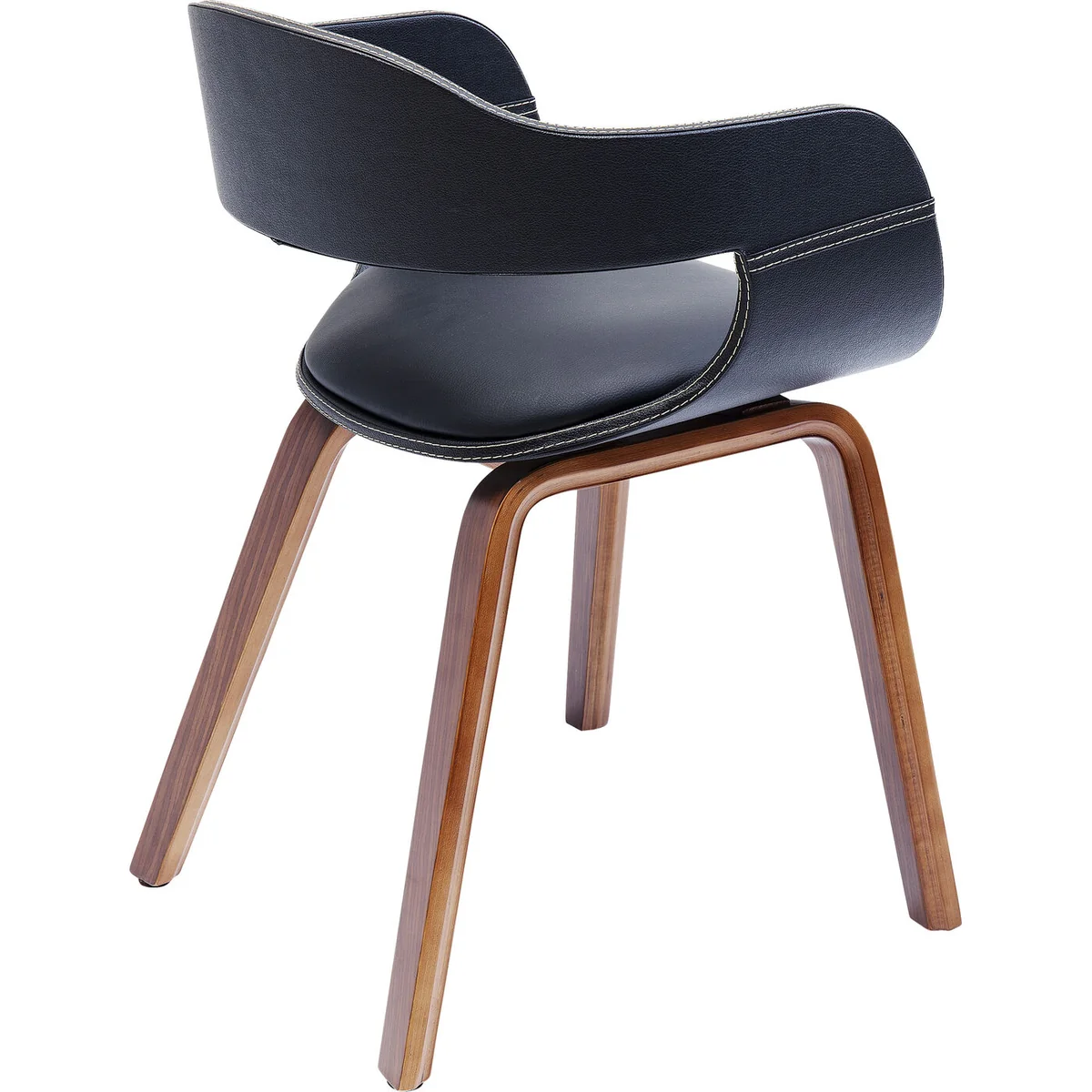 Chair: aristocratic elegance in black and walnut. In the Costa Walnut chair, black and a strong brown form a charming contrast. The comfortable black seat with its black armrests and backrest are supported by four legs made of walnut. Curvy contours characterise the elegant design of this chair, in which the formal idiom has a discreet tone. So much elegance with soothing understatement is well suited to conference rooms with a classically beautiful ambience, but also to living rooms which radiate a cultivated comfort.