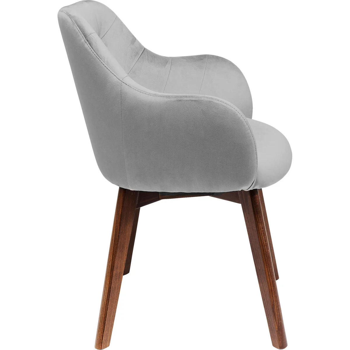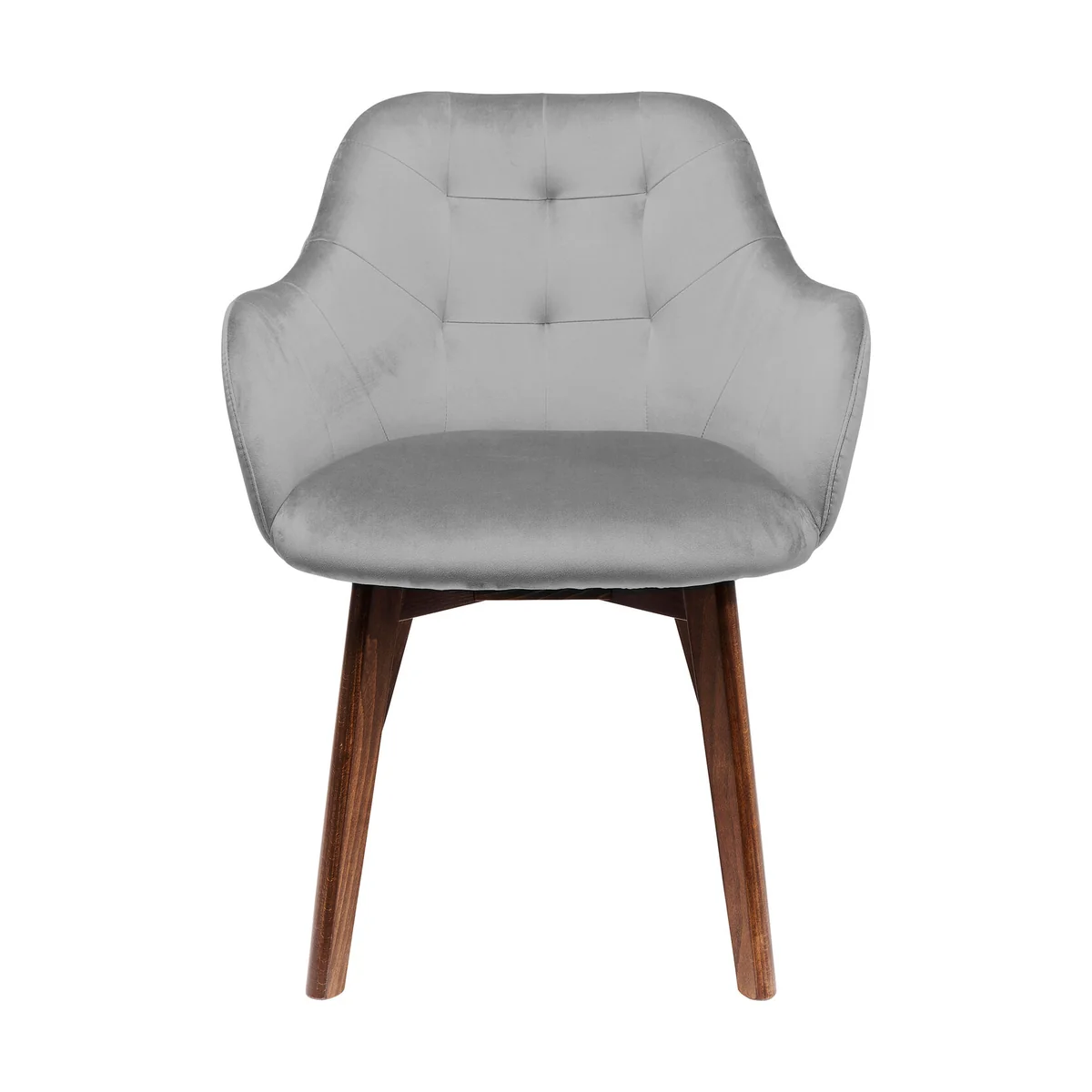 The Lady Dining Chair exudes elegance with its velvet stitch upholstery and graceful armrests. This chair blends modern luxury with timeless charm, creating a refined and comfortable seating experience that elevates any dining setting.