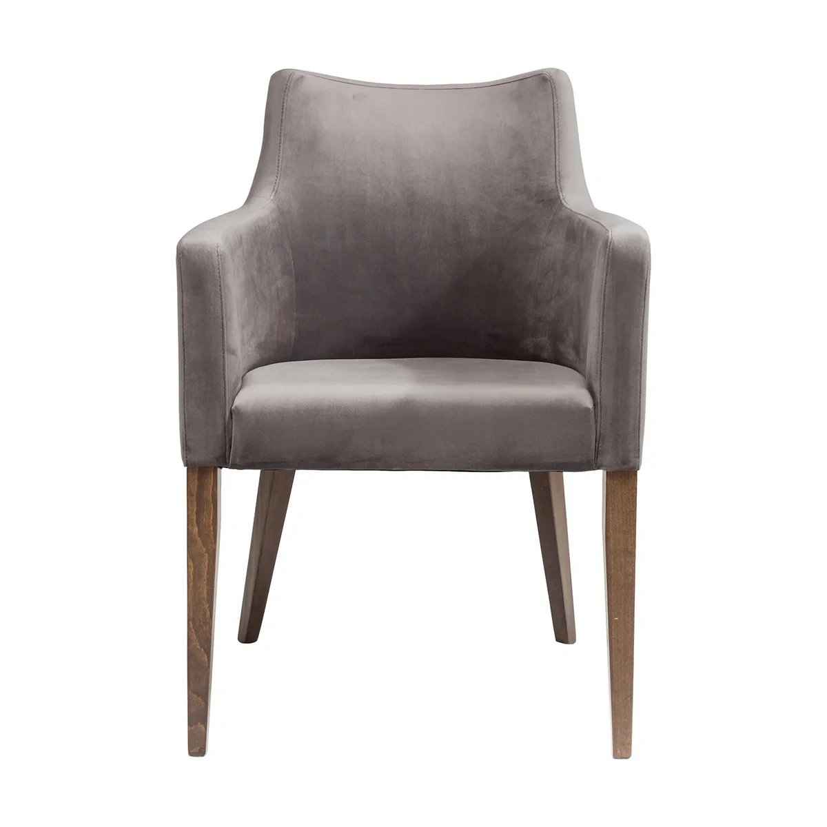 An elegant upholstered chair with a velvet-soft cover made of polyester velvet. Gives every dining room a touch of exclusivity. The dark wooden legs also contribute to this. Made in the EU. Other versions also available.