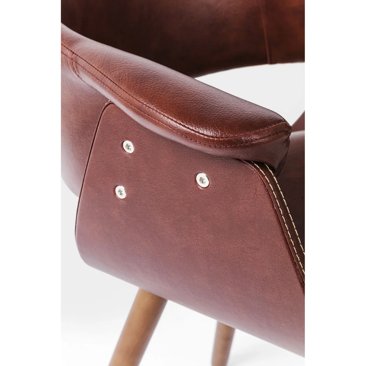 Welcome the Nougat Armrest Chair in Brown Leather Look to your living space for a stylish and comfortable seating solution.
