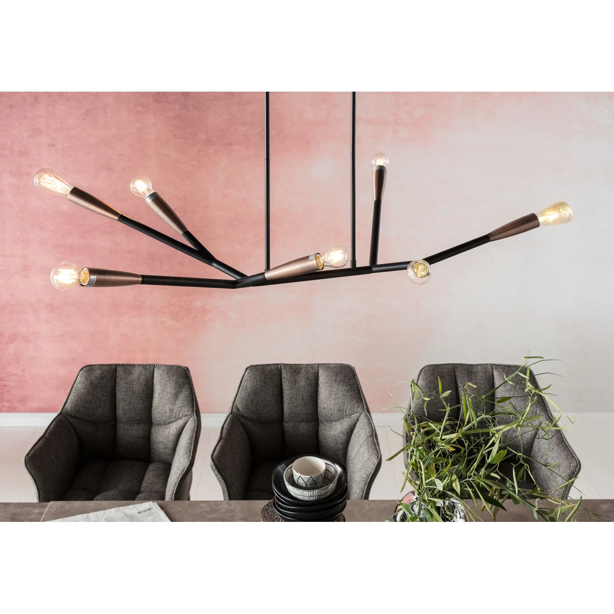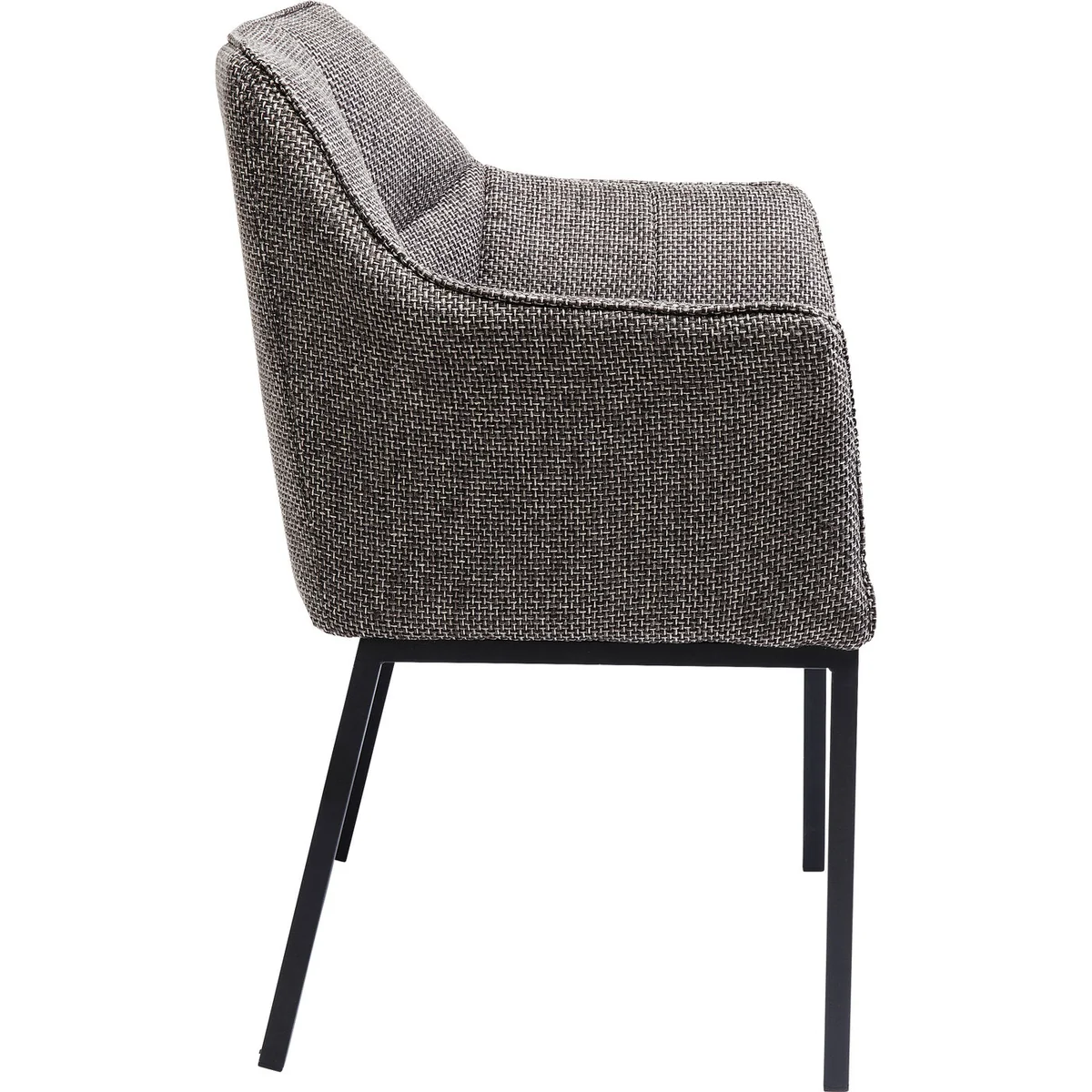 ● An elaborately crafted armchair with a mottled grey, structured fabric cover, decorative seams and black steel legs in a modern look. ● No room for an additional armchair in the home? Upholstered, high-quality chairs with armrests are a skilful alternative ● Perfect seating comfort at the dining table thanks to the generous upholstery: making sure that valued guests stay longer ● The slender legs made of powder-coated steel ensure stability ● Thinktank also comes in other colours, as a bench and as a barstool
