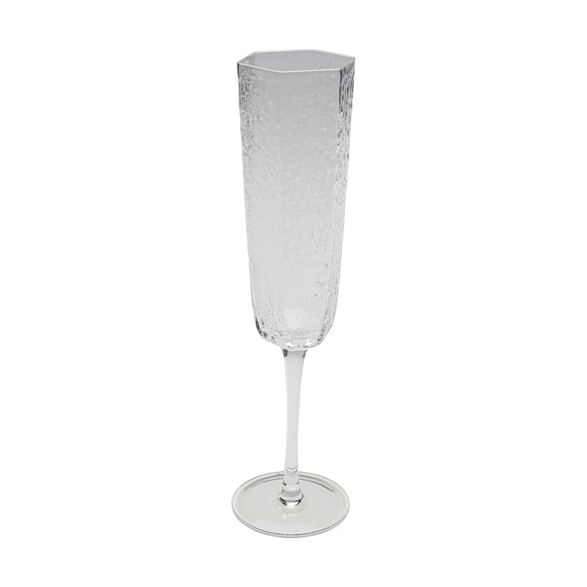 • Modern champagne glass in clear, 27 x 7 x 7 centimeters (H/W/D) • The glass impresses with its unusual hexagonal shape • The textured surface gives a natural, high-quality look and feel • The champagne glass with a capacity of 250 ml is perfect for sparkling refreshments • Dishwasher-safe and therefore perfect for everyday use or special occasions