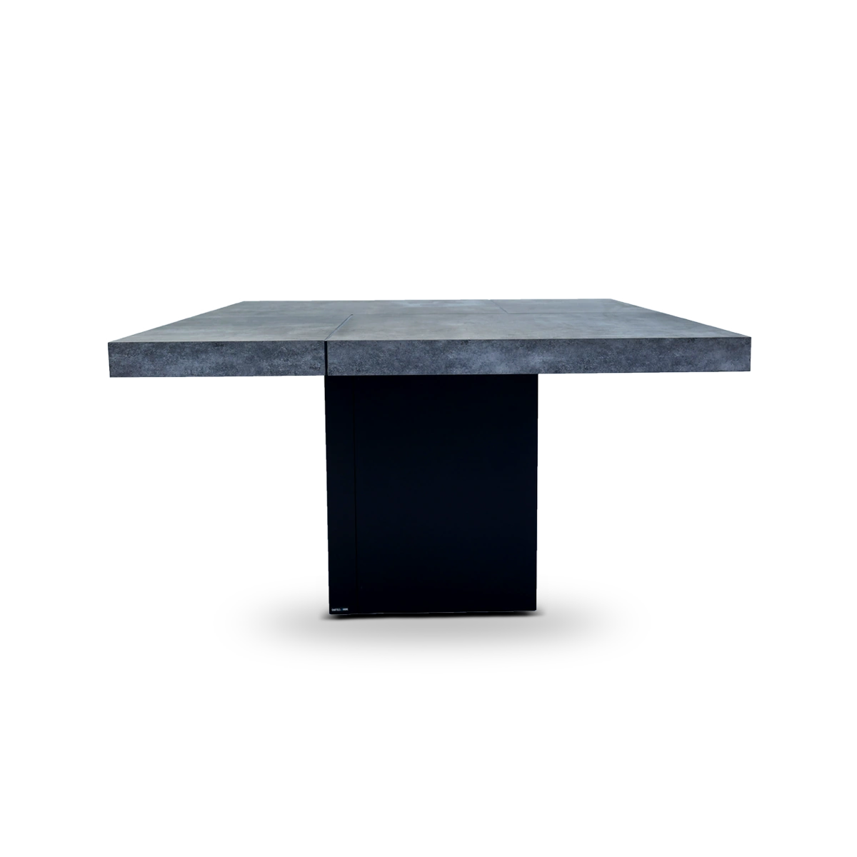 Expertly crafted with a durable chipboard core, the table boasts a 131 cm square surface ideal for gatherings. The concrete look finish adds a raw, stylish edge, while black accents offer contemporary sophistication. Pair with leather or metal chairs to complete a modern dining space for 4–6 people.