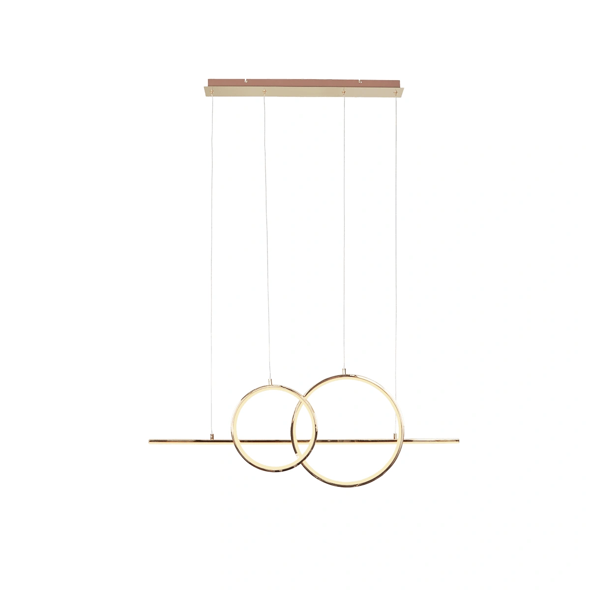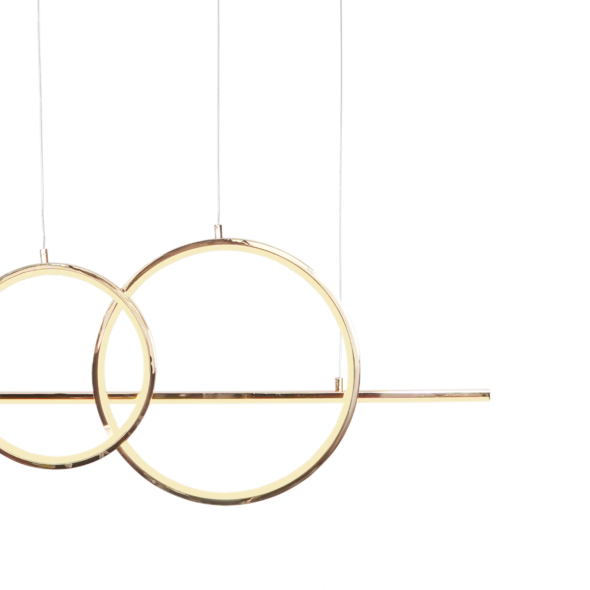 The Cholet Pendant Lamp in Gold adds a sleek and modern touch to any room. Its frame is crafted from durable aluminum, while the silicone detailing enhances its soft glow. Perfect for creating a warm and inviting atmosphere in your dining or living area.