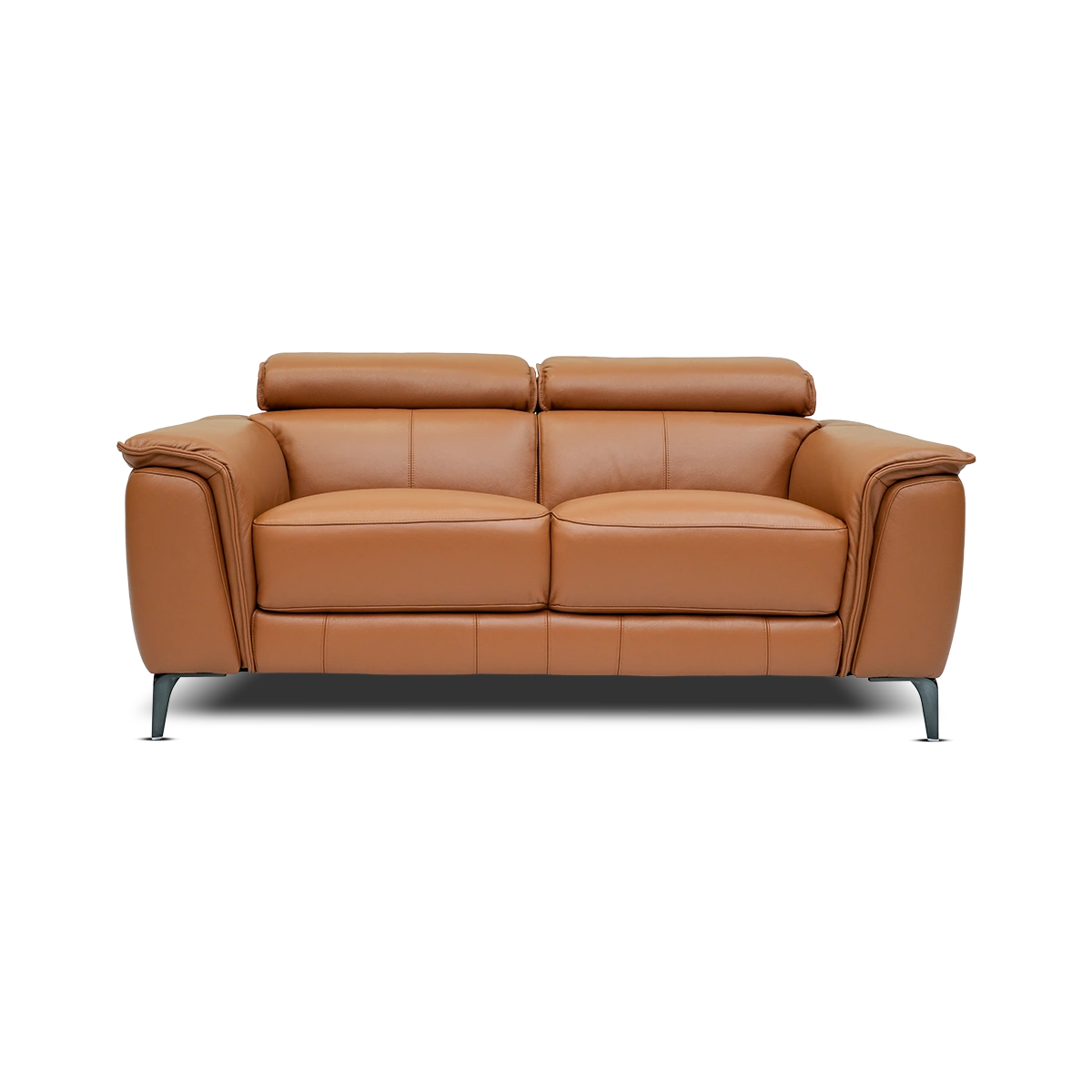 Meet our Cindy 2-Seater Sofa, a perfect blend of comfort and style for your living room. With its brown protected leather finish and sleek metal legs, it's a standout piece that combines functionality and elegance.