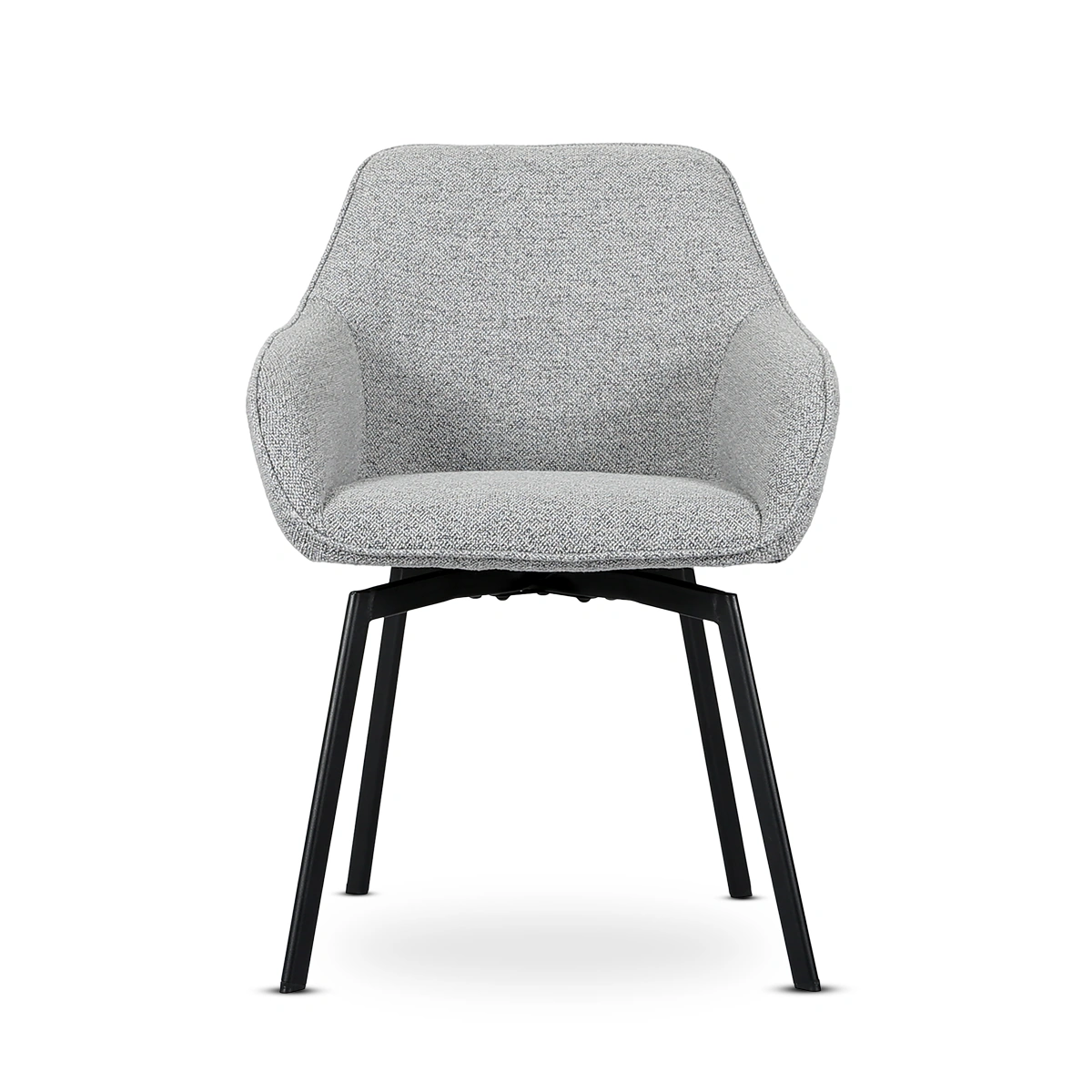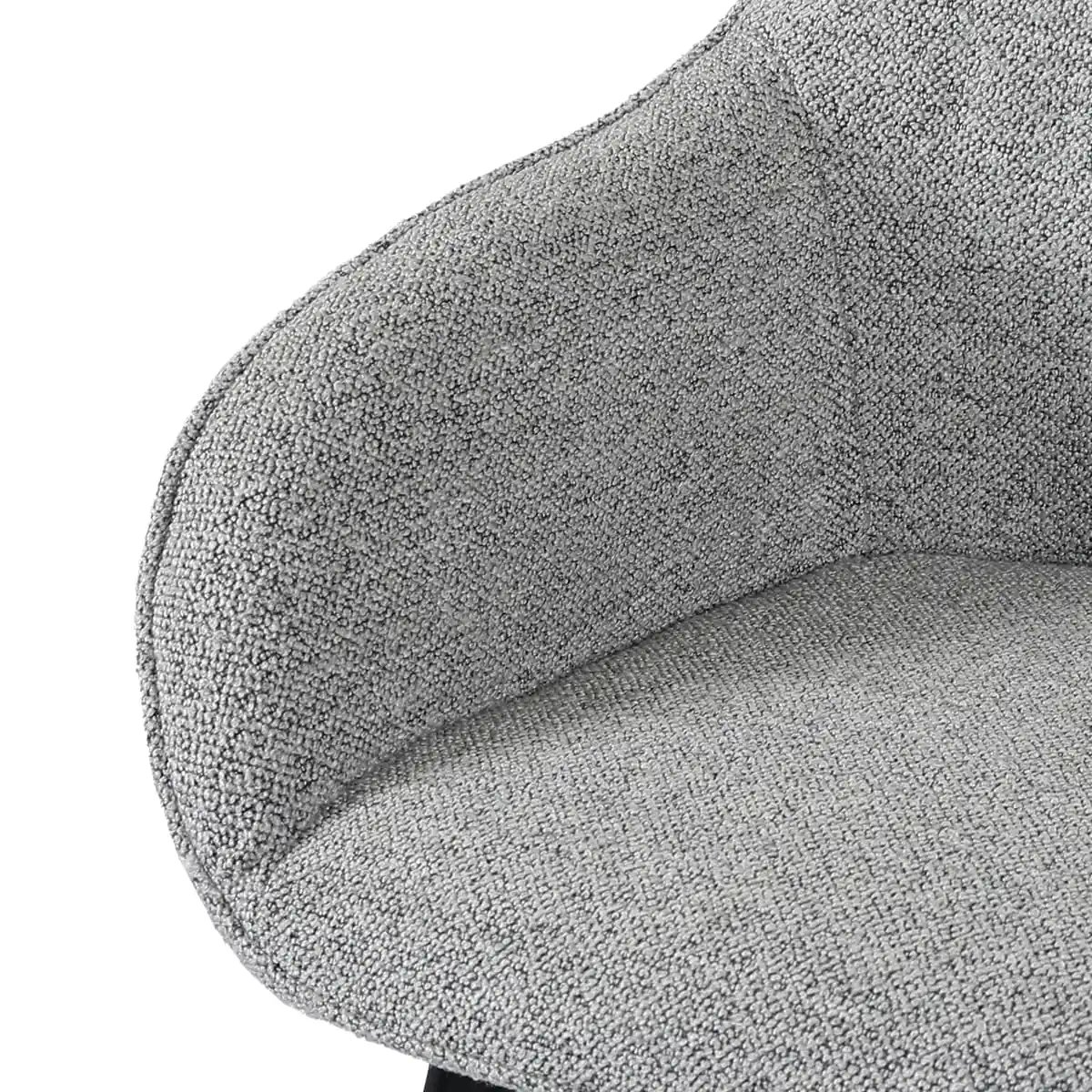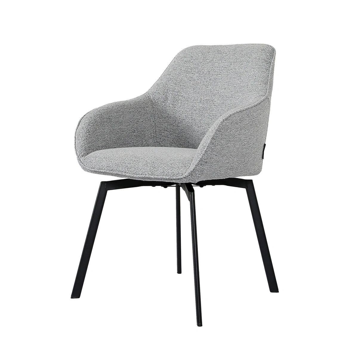 Clara Dining Chair With Armrest, Monza Fabric Grey 120, Base Matt Black Rough Powder Coated Steel, With Auto-Return, Box 2 Pcs