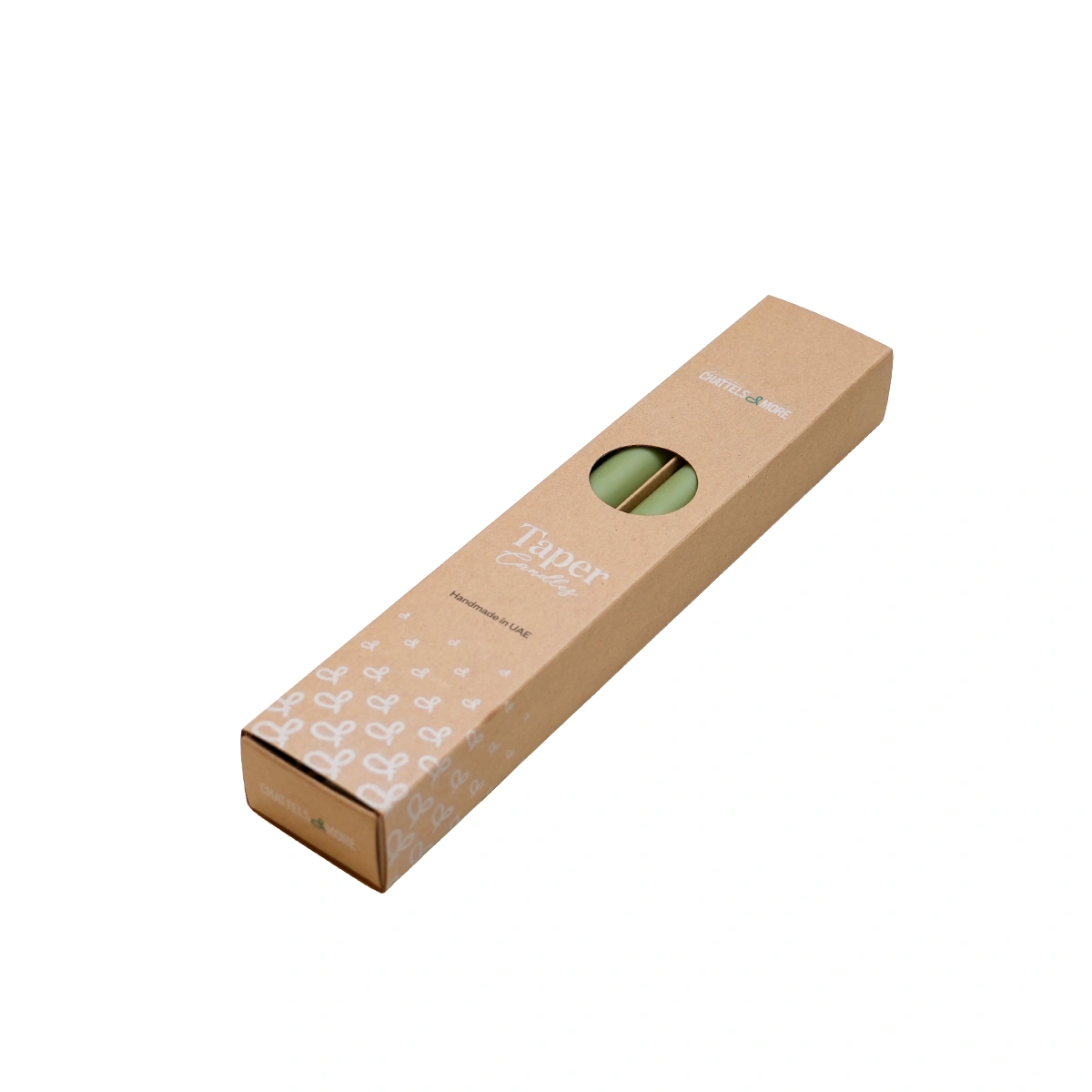 Add a soothing touch to your space with our medium-sized Sage Green Taper Candle made from a premium Soy Blend Wax. A classic addition for any home décor, it effortlessly enhances the ambiance of your surroundings.