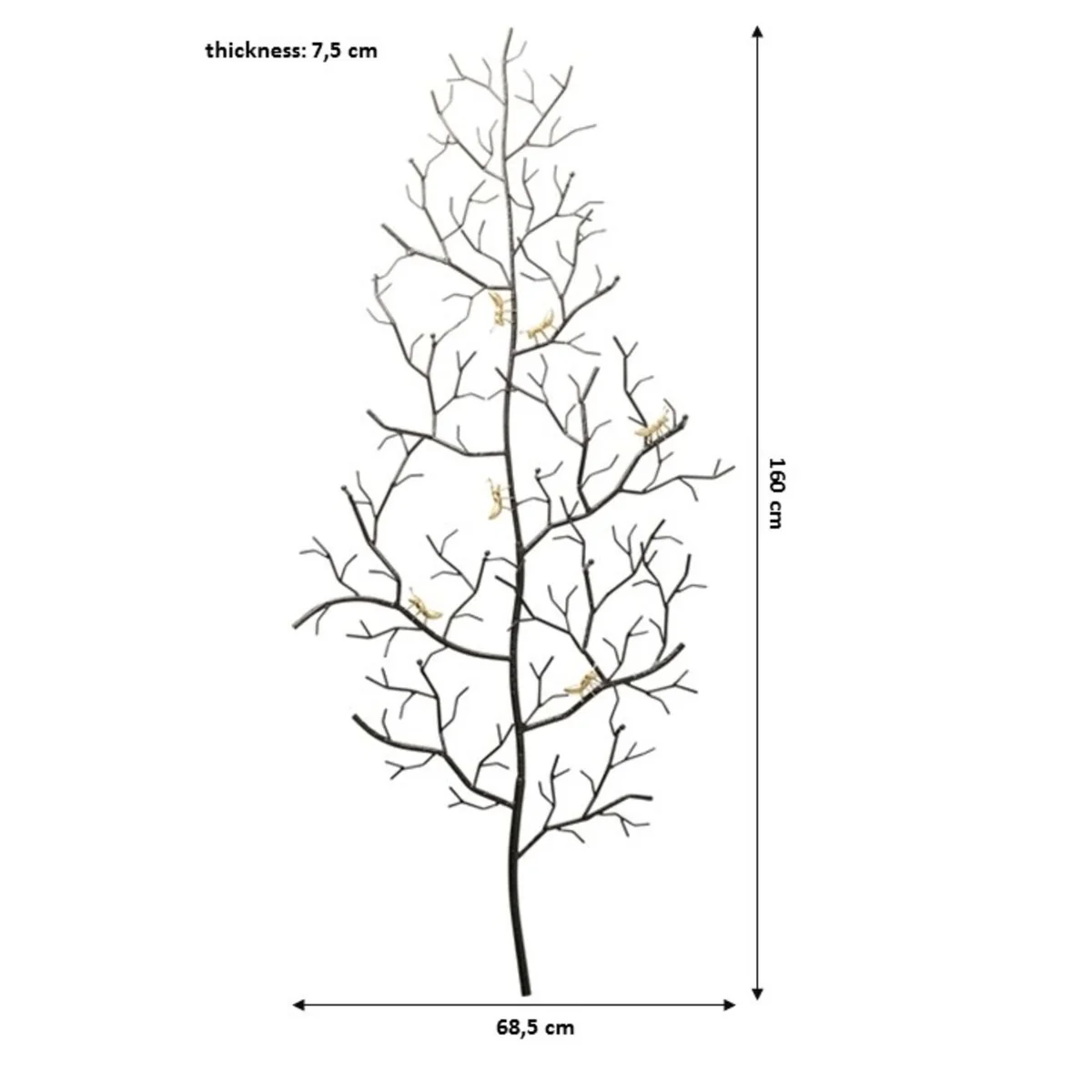 This coat rack's key features include its robust steel construction, powder-coated for enhanced durability. The design, reminiscent of ants on a tree, adds whimsical flair to any space. With a length of 68.5 cm, depth of 7.5 cm, and height of 160 cm, it offers ample space for your coats and accessories.