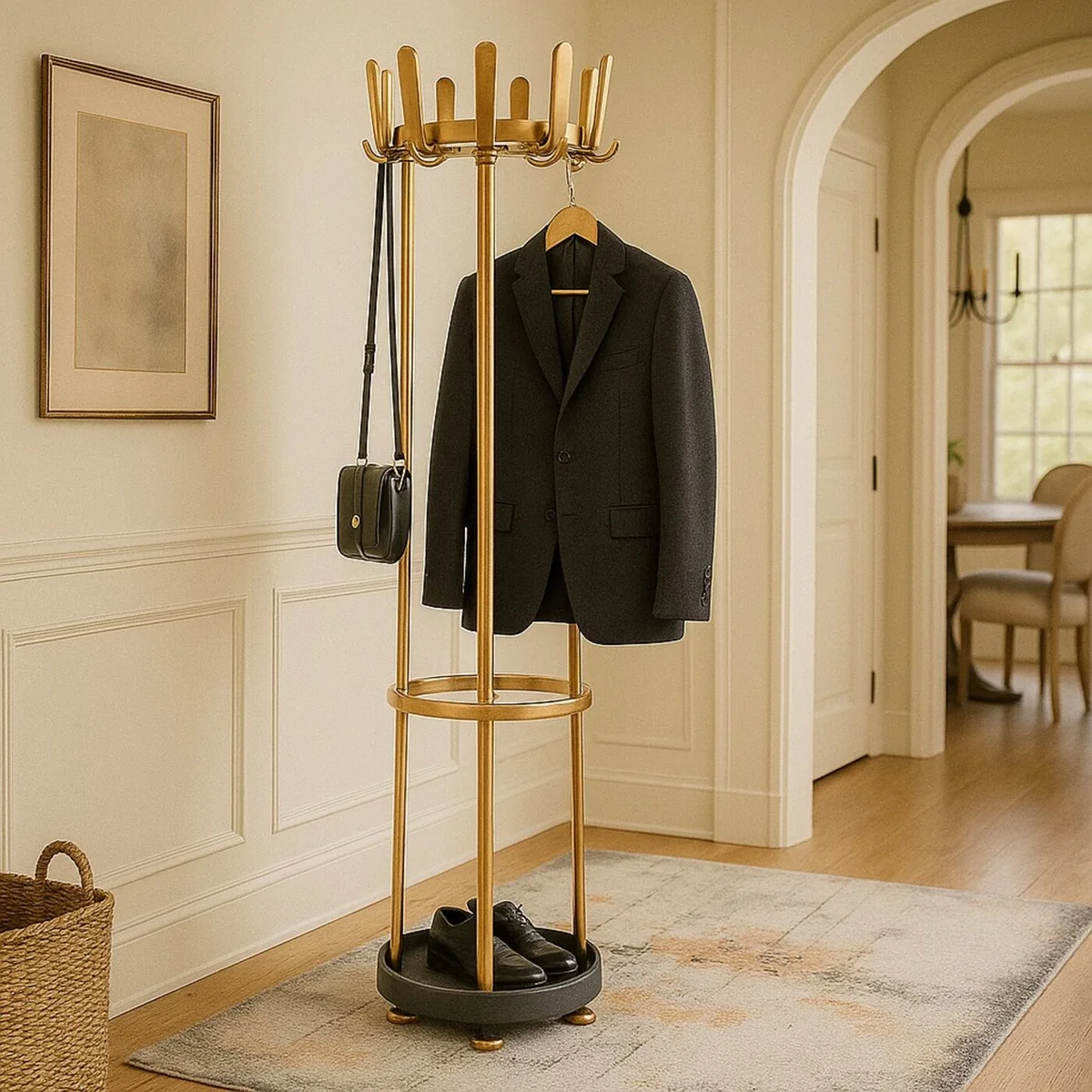 Introducing the Gala Golden Aluminum Coat Rack, a stylish and functional addition to any entryway or hallway.