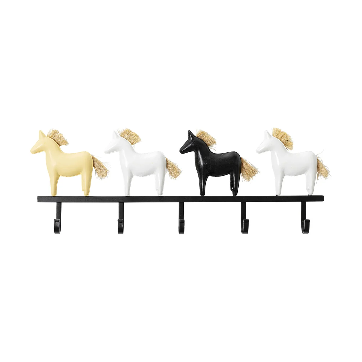 This 63cm long coat rack is crafted from solid pine wood and features a lacquered finish for durability. The multicolor design, inspired by horse riding, adds a pop of color and fun to any space. The compact size of 63cm in length, 4cm in width, and 22cm in height makes it ideal for small spaces.