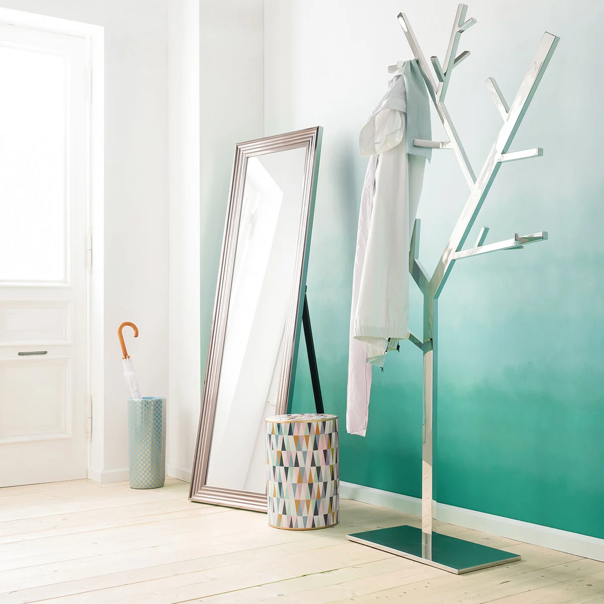 Welcome home to the Silver Technical Tree Coat Rack in stainless steel – a modern staple for every stylish entryway.