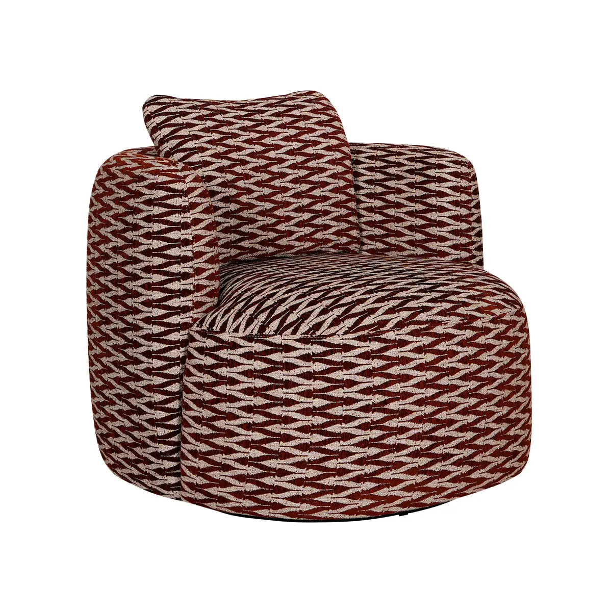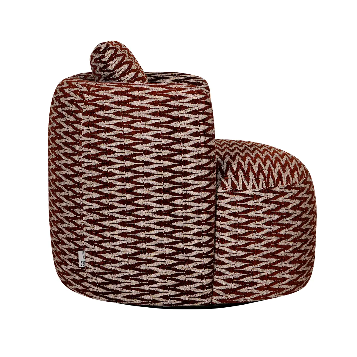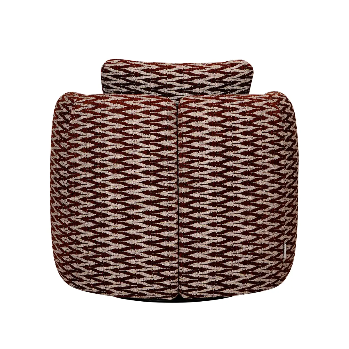 The Coco Arm Chair in beige brown is a statement accent piece designed to add comfort and character to living rooms or lounge areas. Its sculptural form and soft upholstery create a welcoming seating option for modern interiors. Upholstered in a Nuage fabric blend, the chair features back cushions filled with goose feathers and silicone blend for plush comfort. A pine wood and plywood frame provides structural strength, while the swivel base adds functional versatility. This armchair delivers luxurious comfort and visual impact. Its supportive cushions, swivel functionality, and refined design make it an ideal choice for stylish and comfortable living spaces.