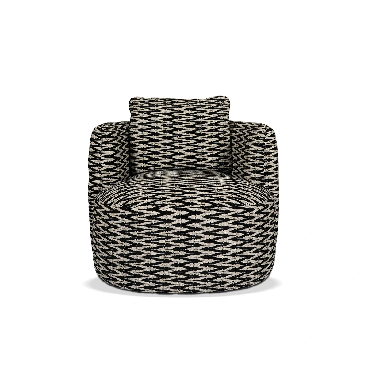 Fabric on armchair: 5630 Fiore (54%PC-43%PL-3%VI); Back cushion filling: goose feathers and silicone blend; Frame: pine wood and plywood ; Legs: swivel mechanism