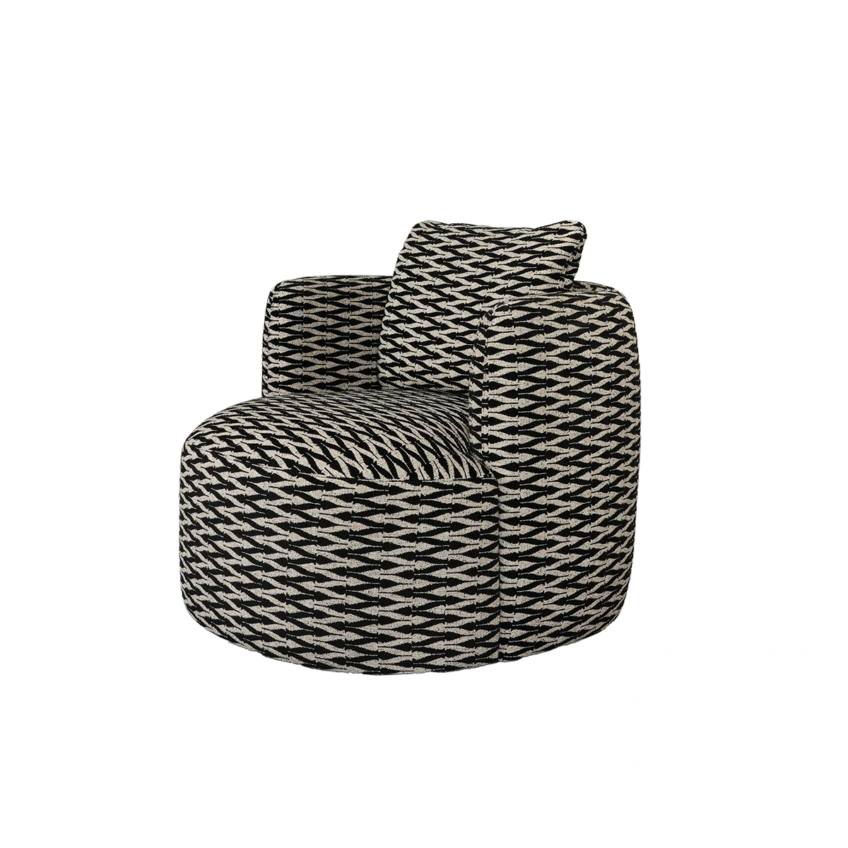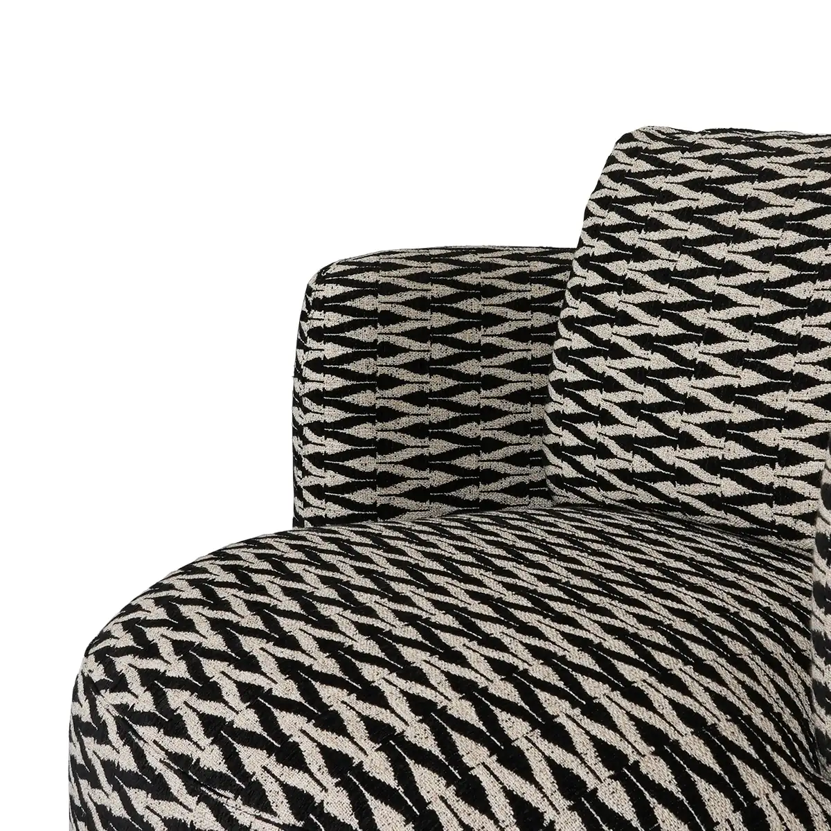 The Coco Armchair offers a balanced duo-tone in black and beige for a subtly stylish statement. Its curved silhouette envelops you comfortably, while cushioned seats ensure support. The mix of black frame and beige upholstery creates a refined contrast, making this chair a versatile accent piece for lounges and cozy corners.