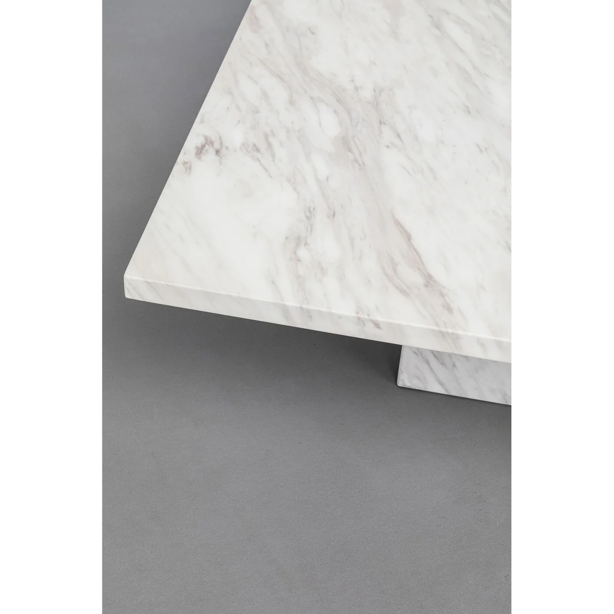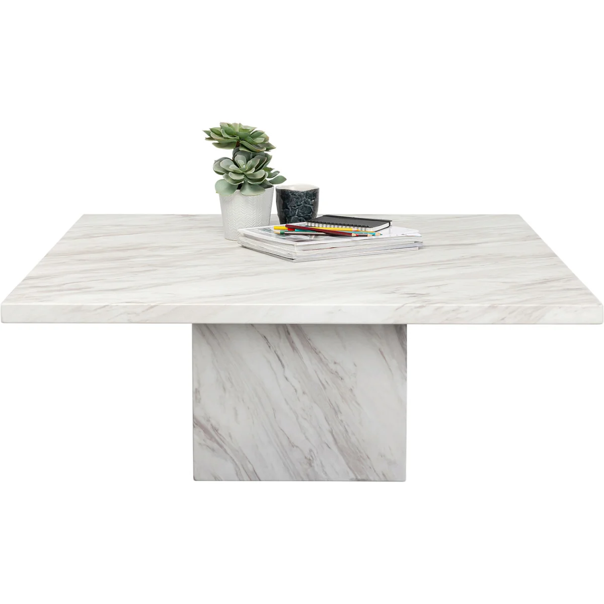 This luxurious accent piece boasts a beautiful white marble top, perfectly complemented by a sturdy MDF and polyresin coated base. With dimensions of 100cm length, 100cm width, and 42cm height, this table provides ample surface space for your coffee, books and more.