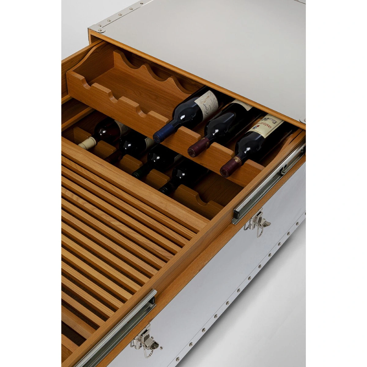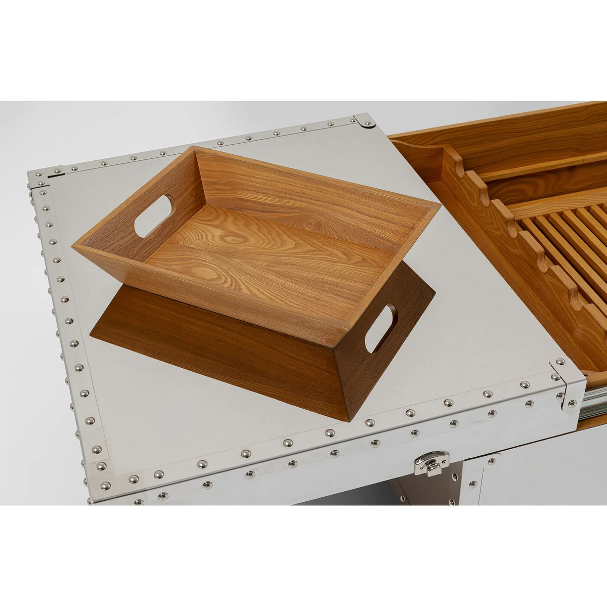 Introducing the Vegas Coffee Bar Table in grey plywood, a modern blend of sleek design and practical utility.