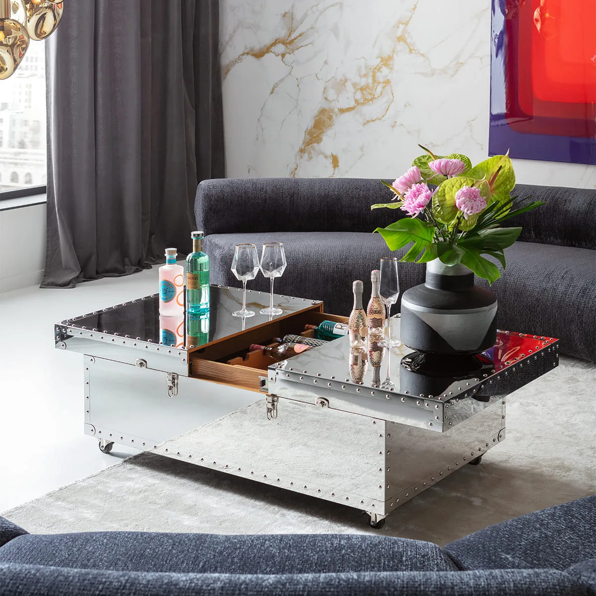 With the Vegas Coffee Bar Table, you not only get a stylish piece of furniture but also a functional item that adds a touch of sophistication to your living room. Its compact design makes it a perfect fit even in smaller spaces, while the sturdy plywood construction guarantees long-term use.