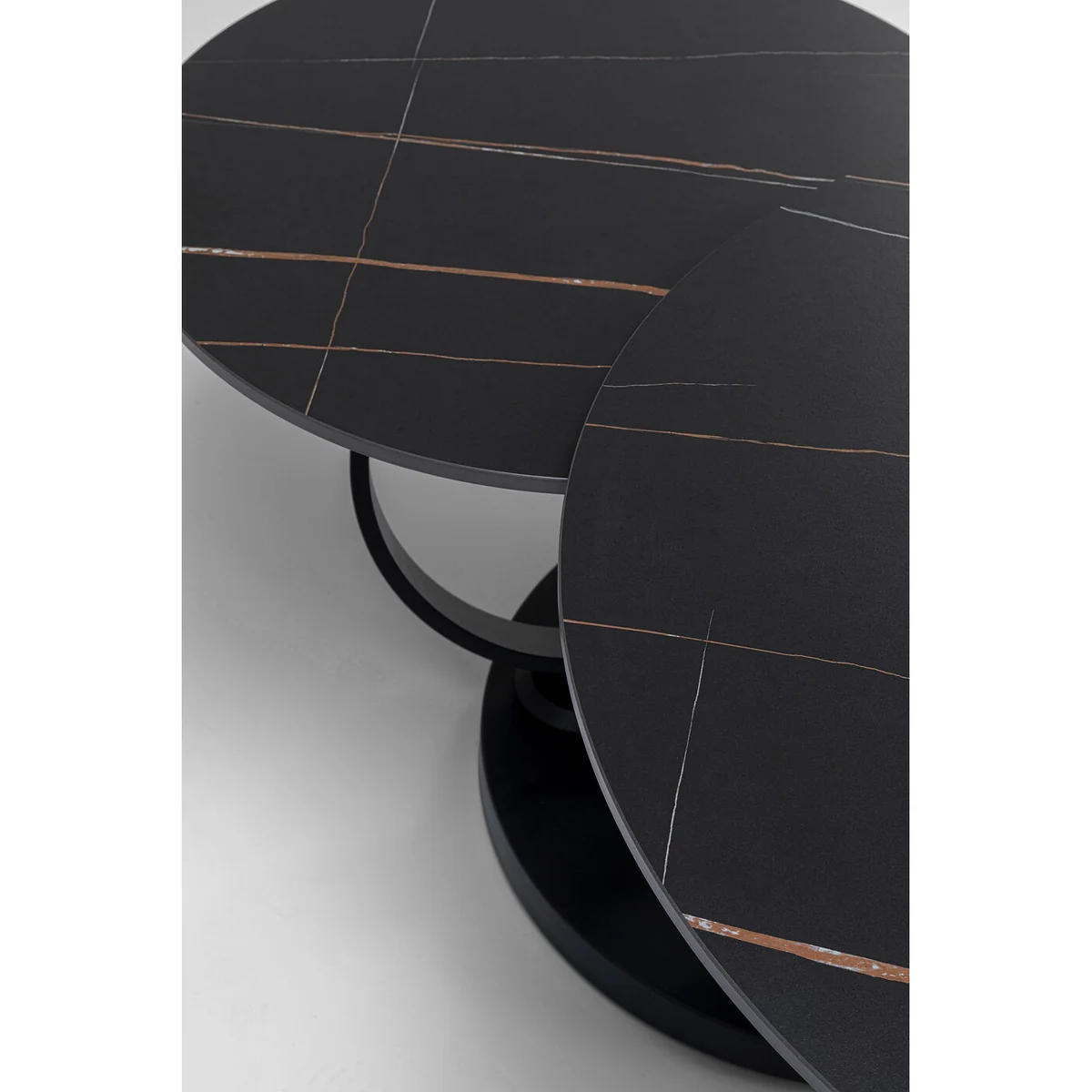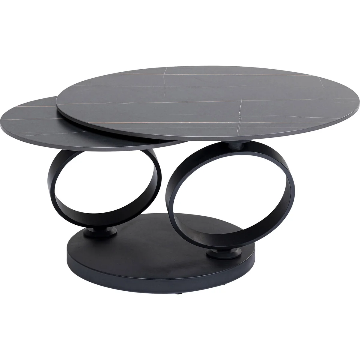 This coffee table is simply captivating in its appearance and brings a luxury ambience and upmarket furnishing style into the home. The round base and the two ring-shaped steel frames are exquisitely powder-coated in matt black. Last but not least, Beverly is infinitely practical. Whether next to the corner sofa or the couch, this coffee table is happy to adapt to your needs. Simply turn the large table top to fit and you'll always have drinks, snacks and the remote control within easy reach.