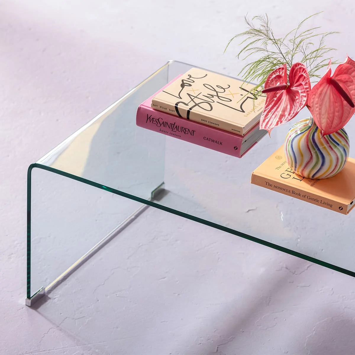 Introducing the Club Basic Coffee Table in clear glass, an epitome of modern elegance and style.