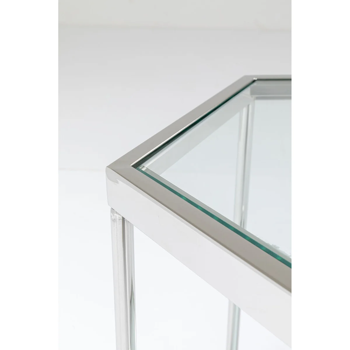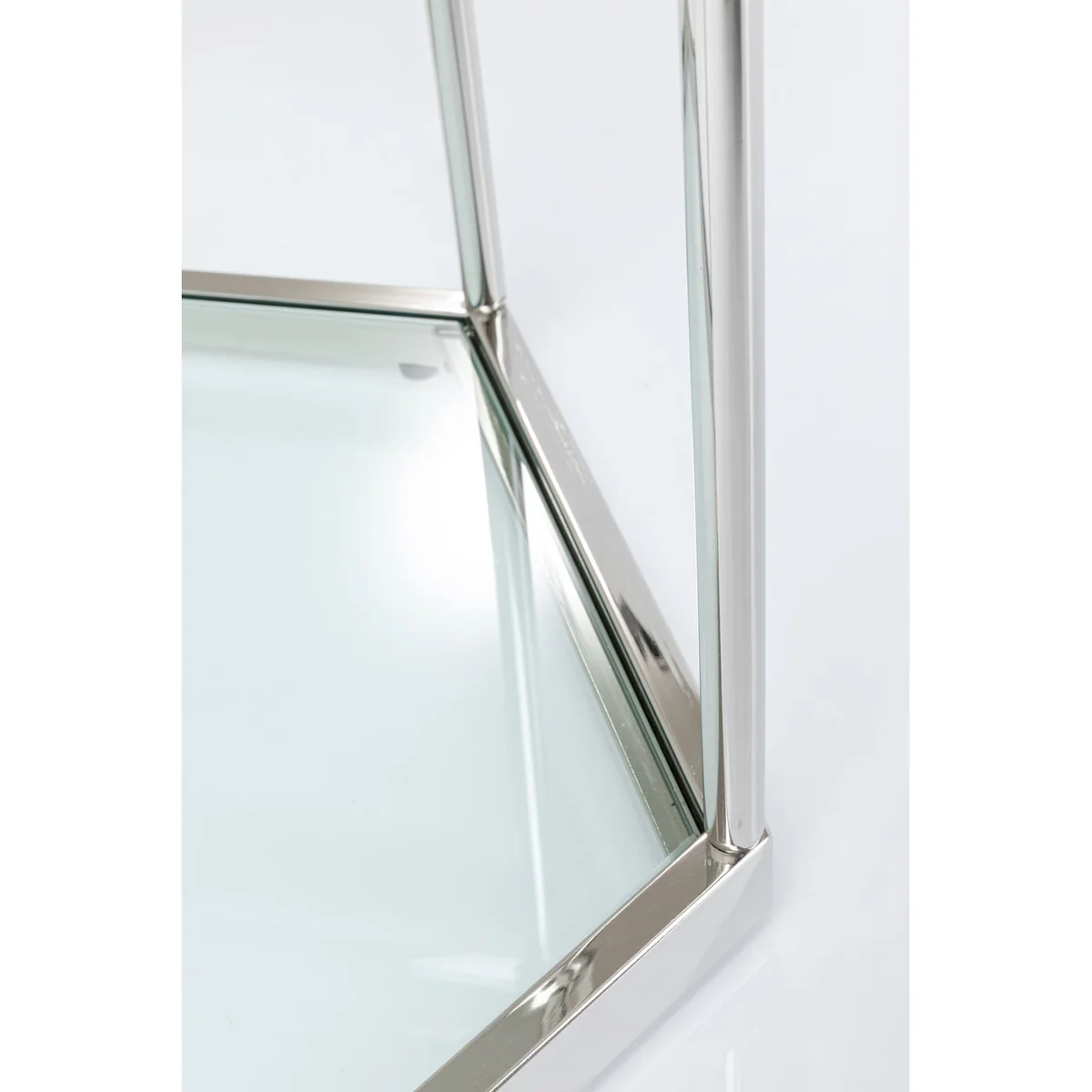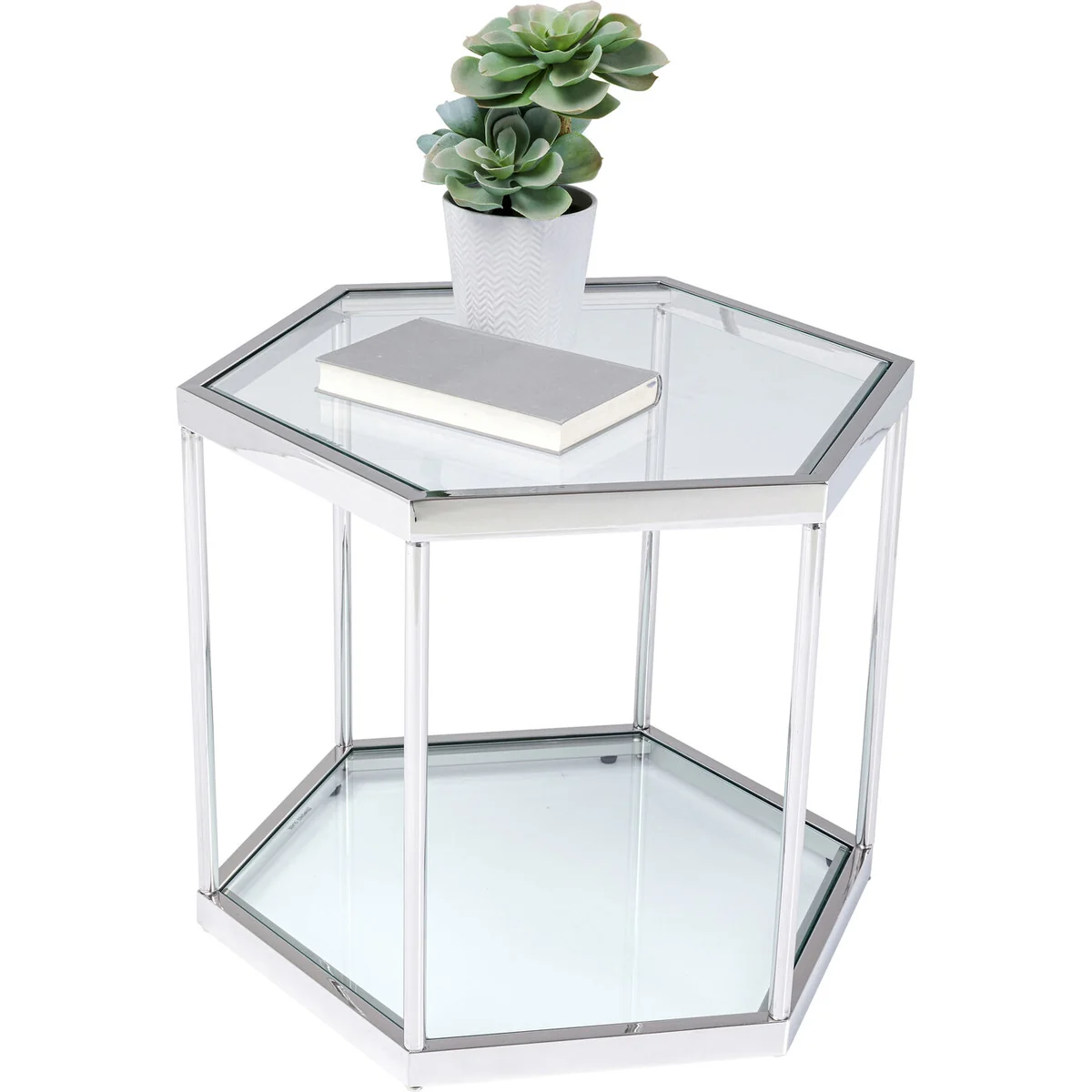 - Modern glam - a hexagonal glass coffee table with a silver-coloured steel frame - Graphic in form, transparent in the room - the side table airily complements your seating group in the living room - Side tables are even more attractive as a pair - because symmetry gives structure to rooms - As bedside tables next to the bed, two Comb Silvers give the bedroom Fifth Avenue flair - As a side table with a lamp the glass table goes beautifully with velvet sofas